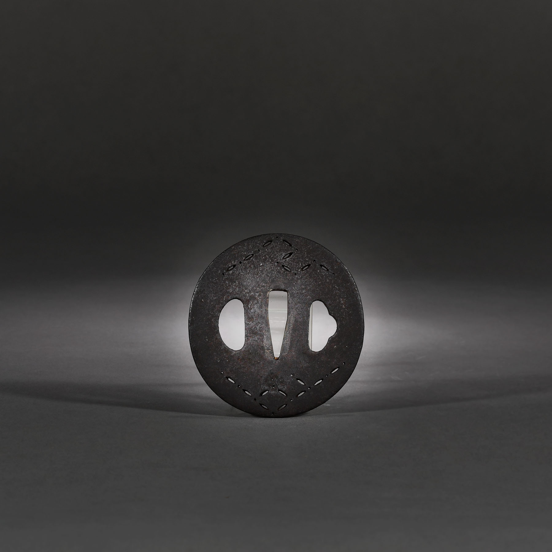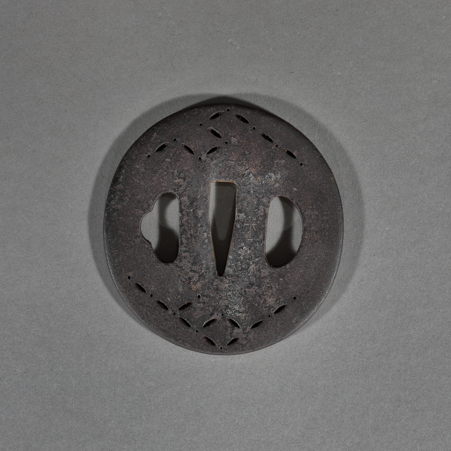 31. Tsuba din bronz, decorată cu motive romboidale, perioada Meiji, sfâșitul sec. XIX, cu certificat NBTHK