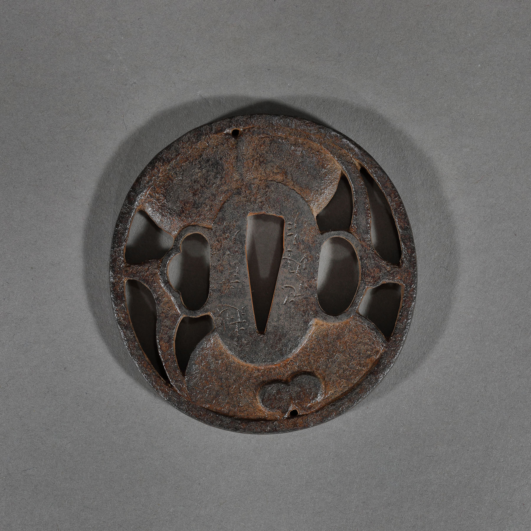 30. Tsuba din bronz, semnată de Echizen Ju Kinai, perioada Edo, Japonia, cca. 1840