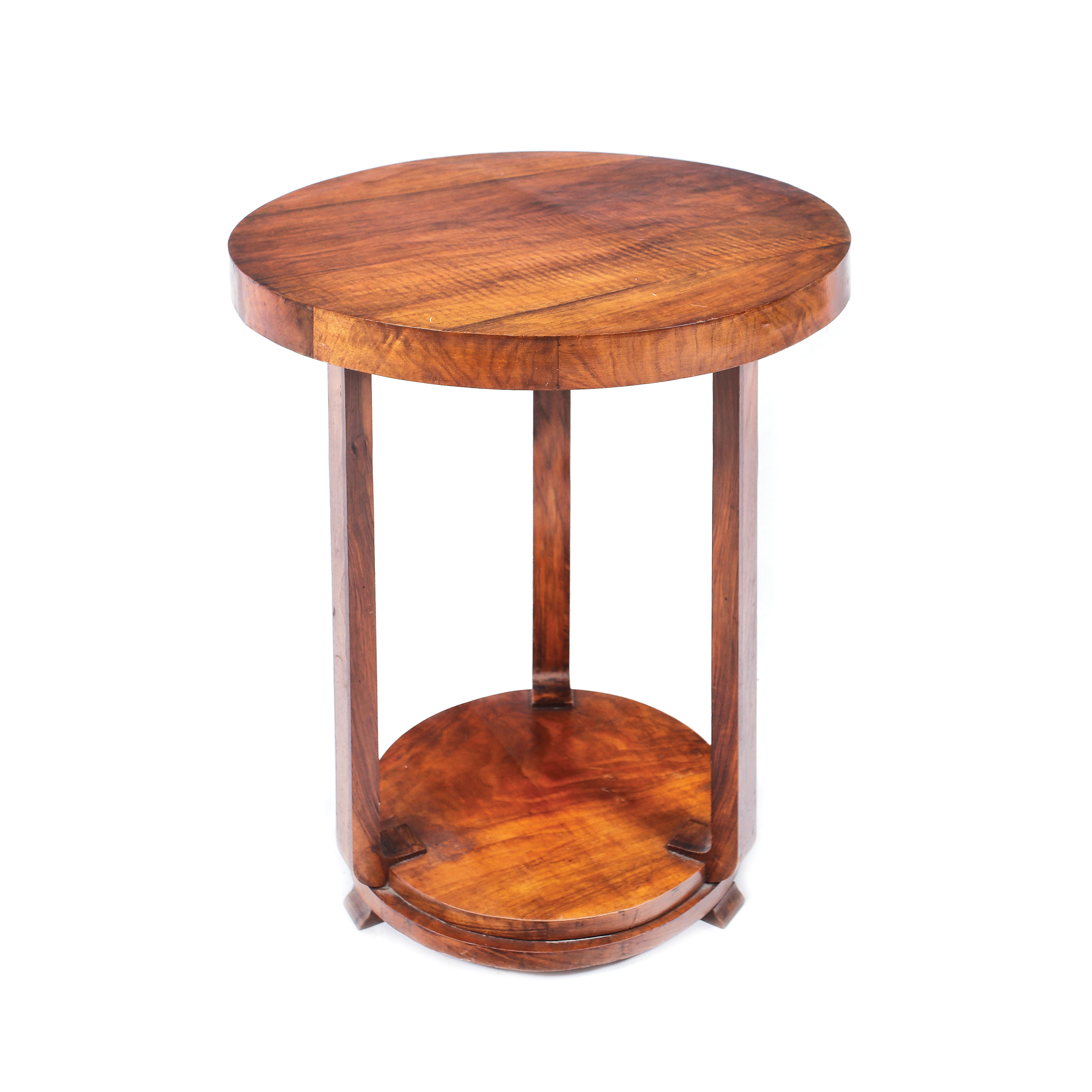 57. Consolă în manieră Biedermeier, cu blat rotund, din lemn de nuc