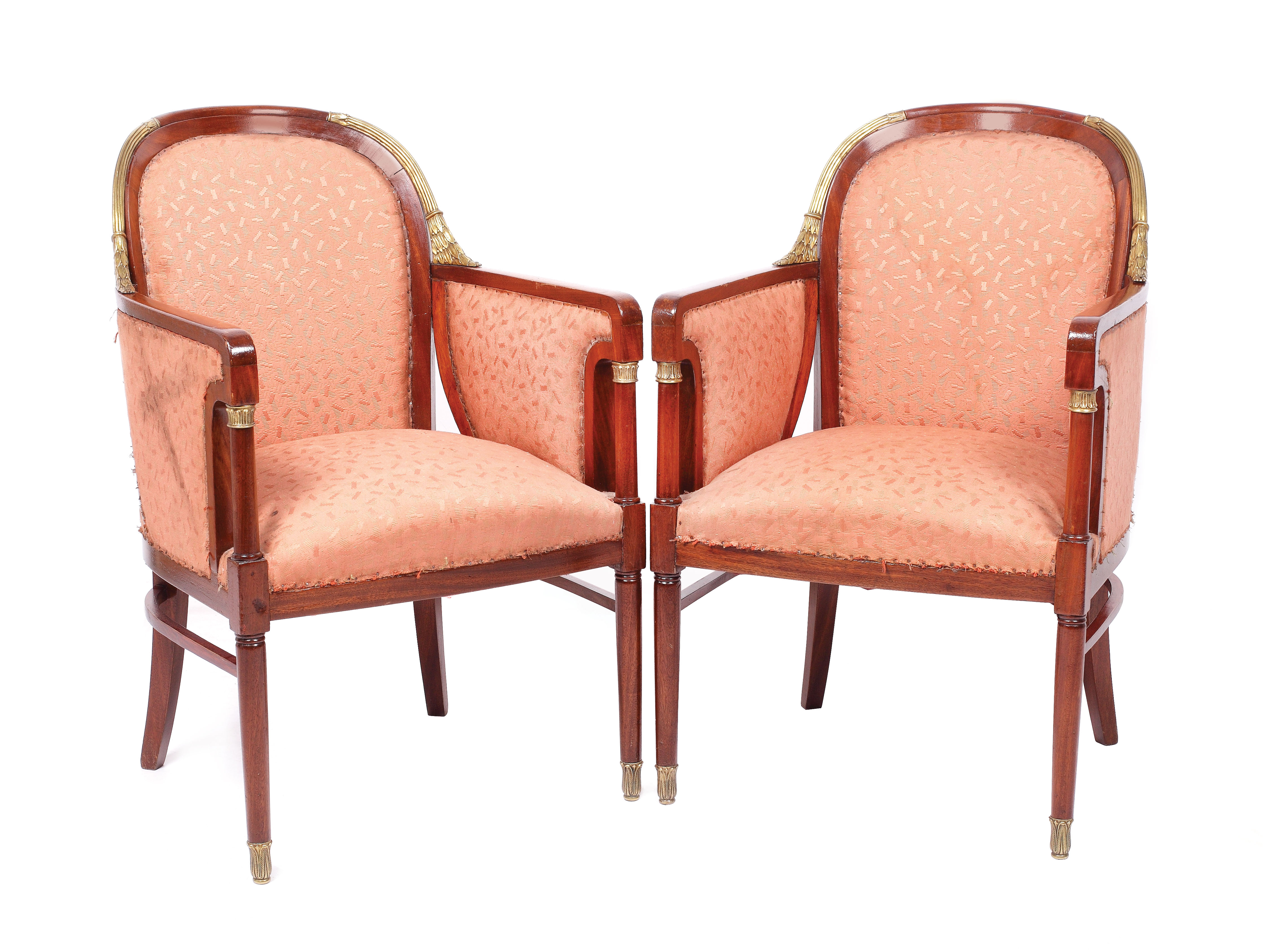 52. Pereche de fotolii Empire, din lemn de fag, începutul sec. XX