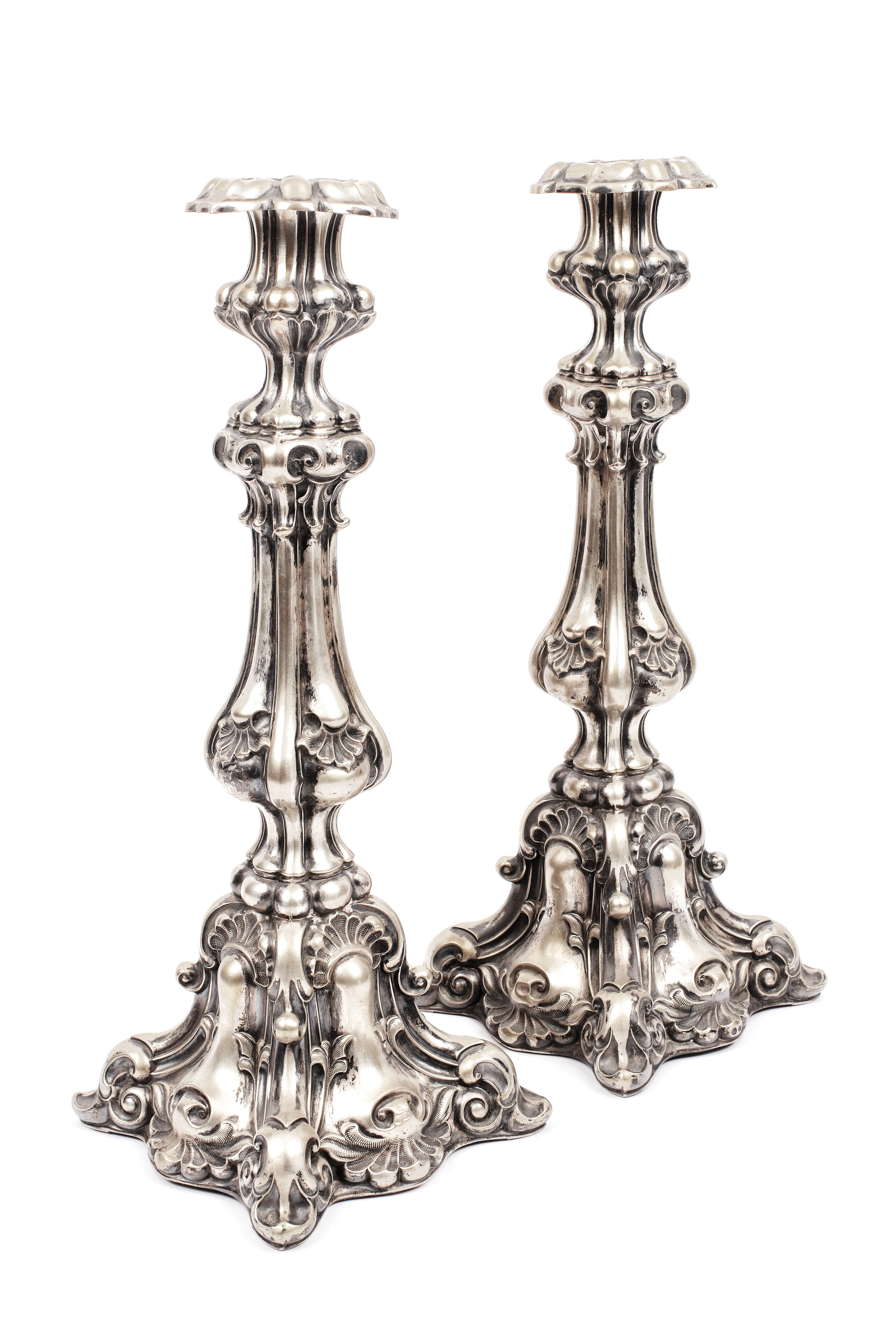 32. Pereche de sfeșnice Biedermeier, din argint, cca. 1890