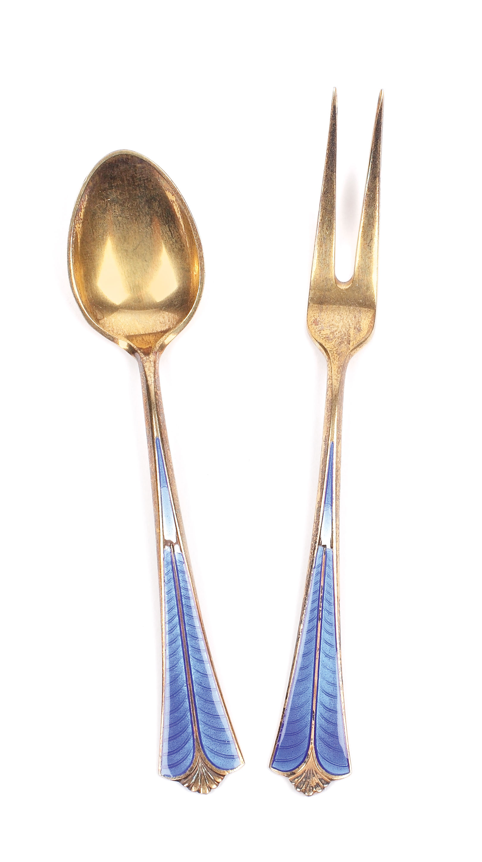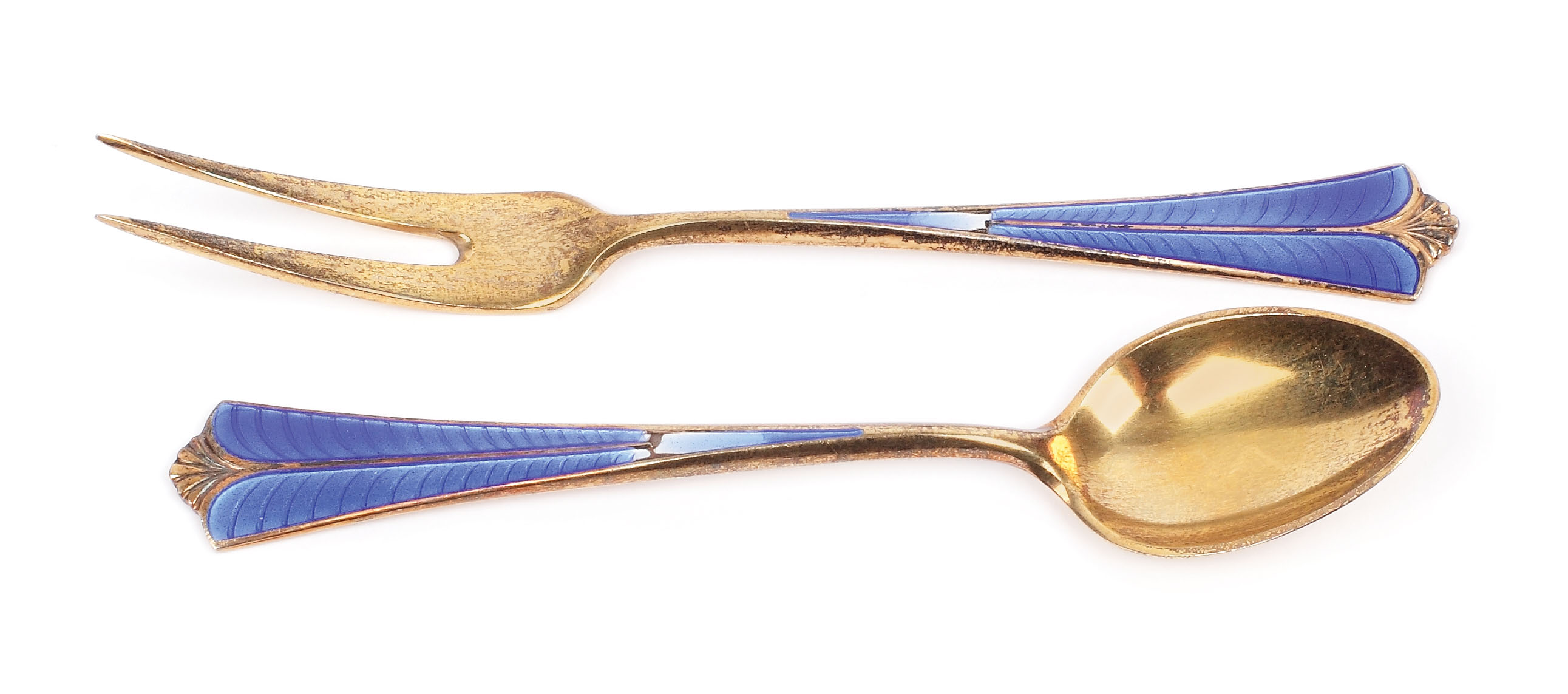 76. Pereche de tacâmuri din argint aurit, pentru desert [Sec. XX]
