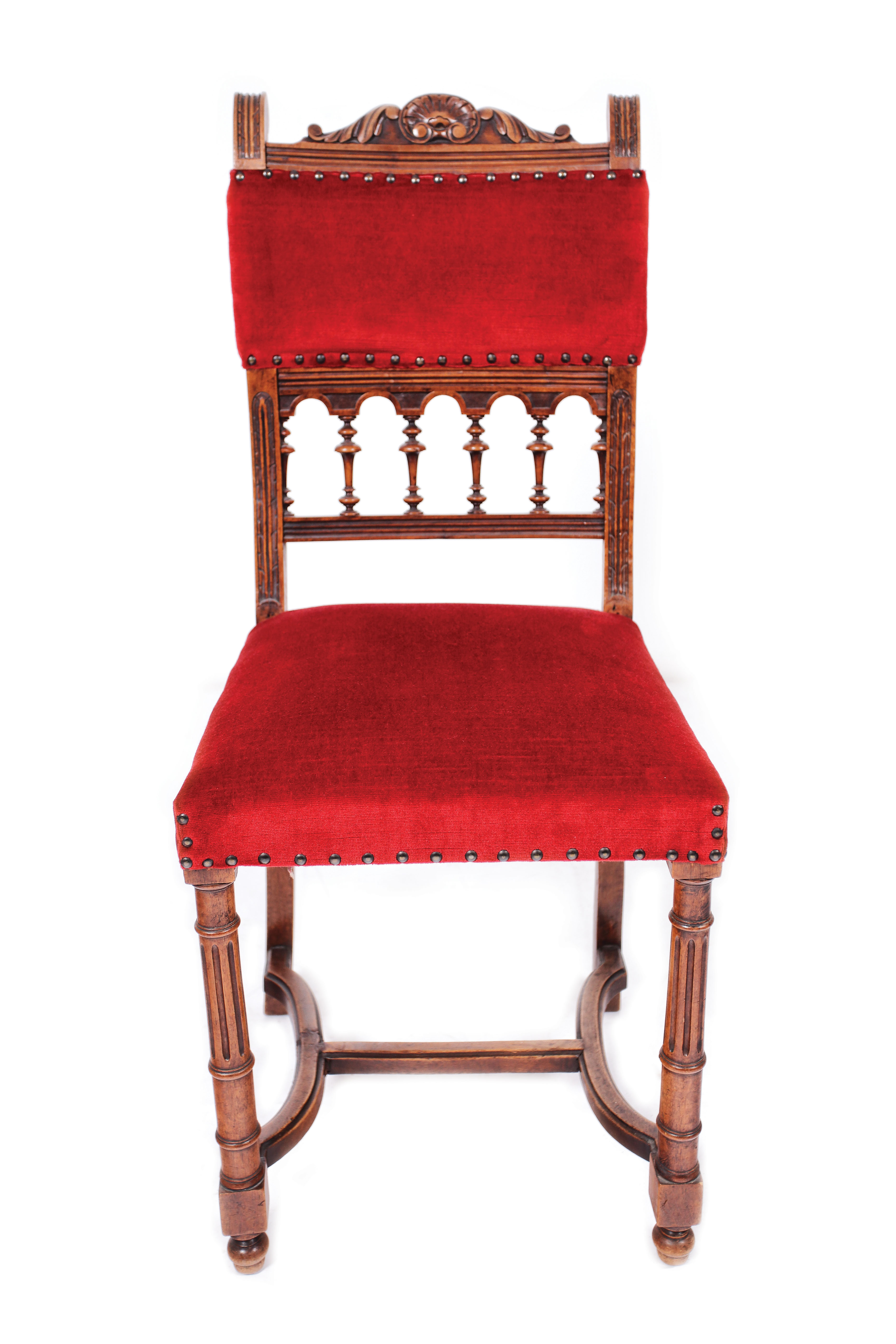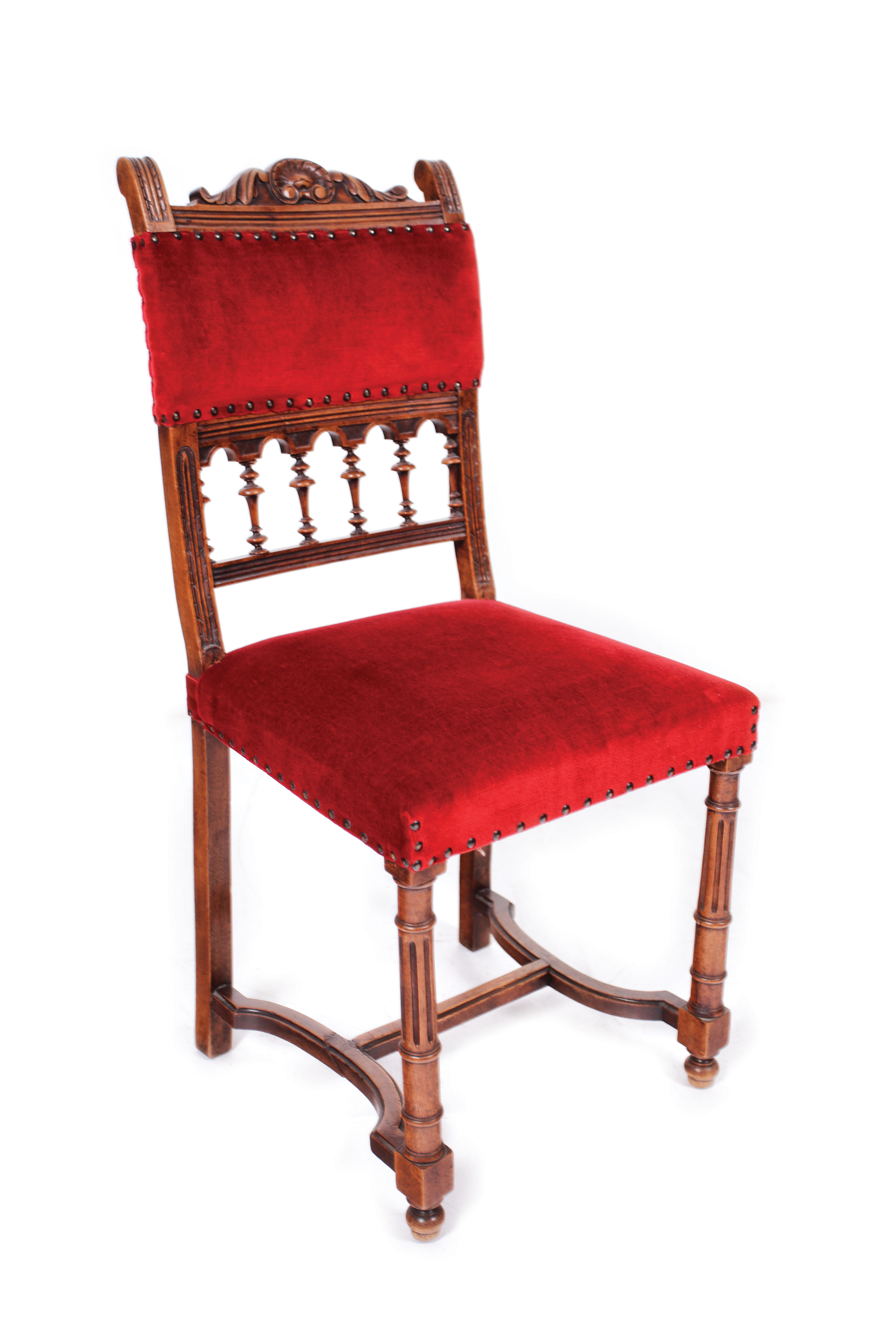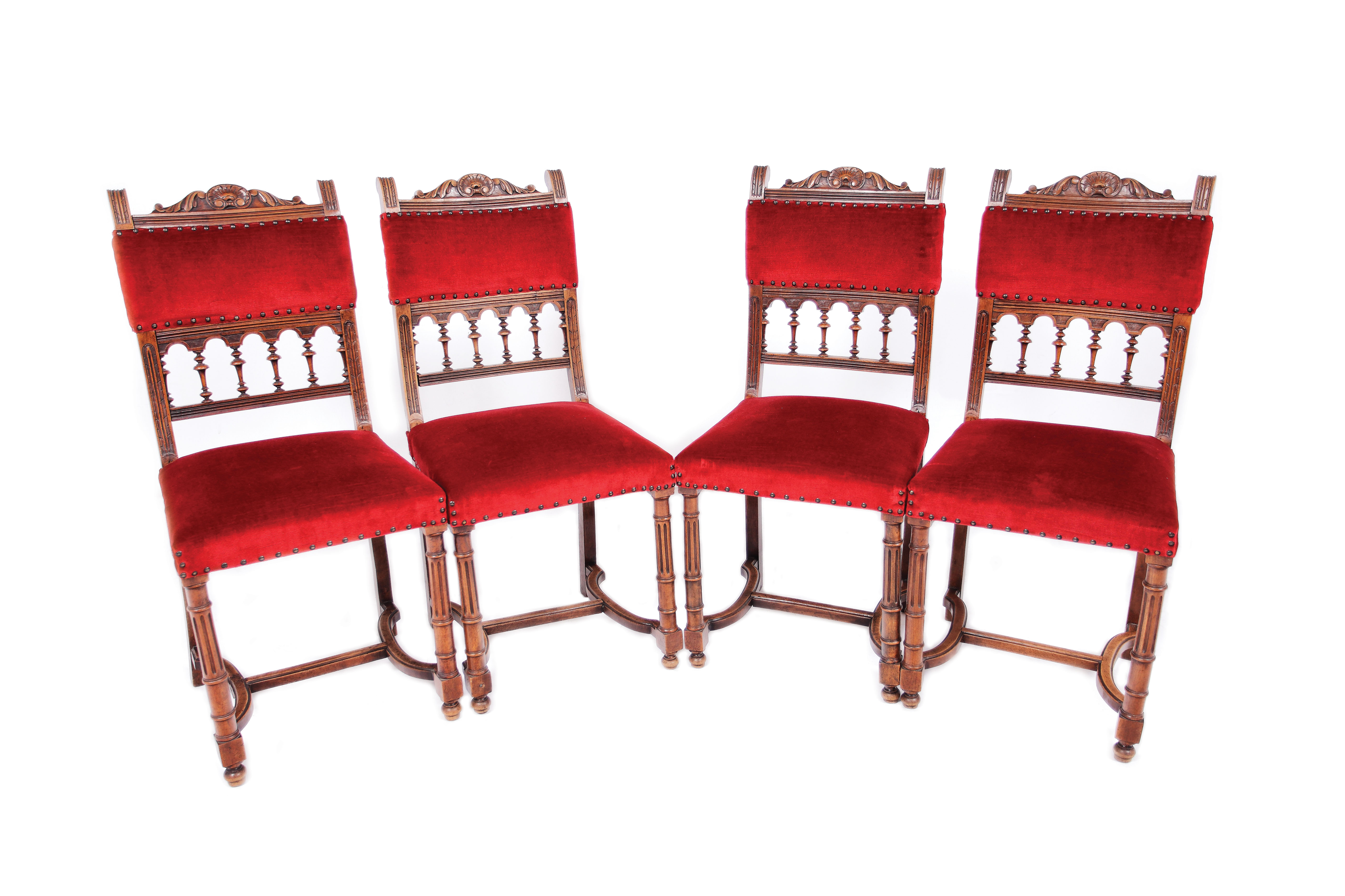 68. Set de 4 scaune în stil Neo-Renaștere spaniolă, din lemn de nuc, sfârșitul sec. XIX