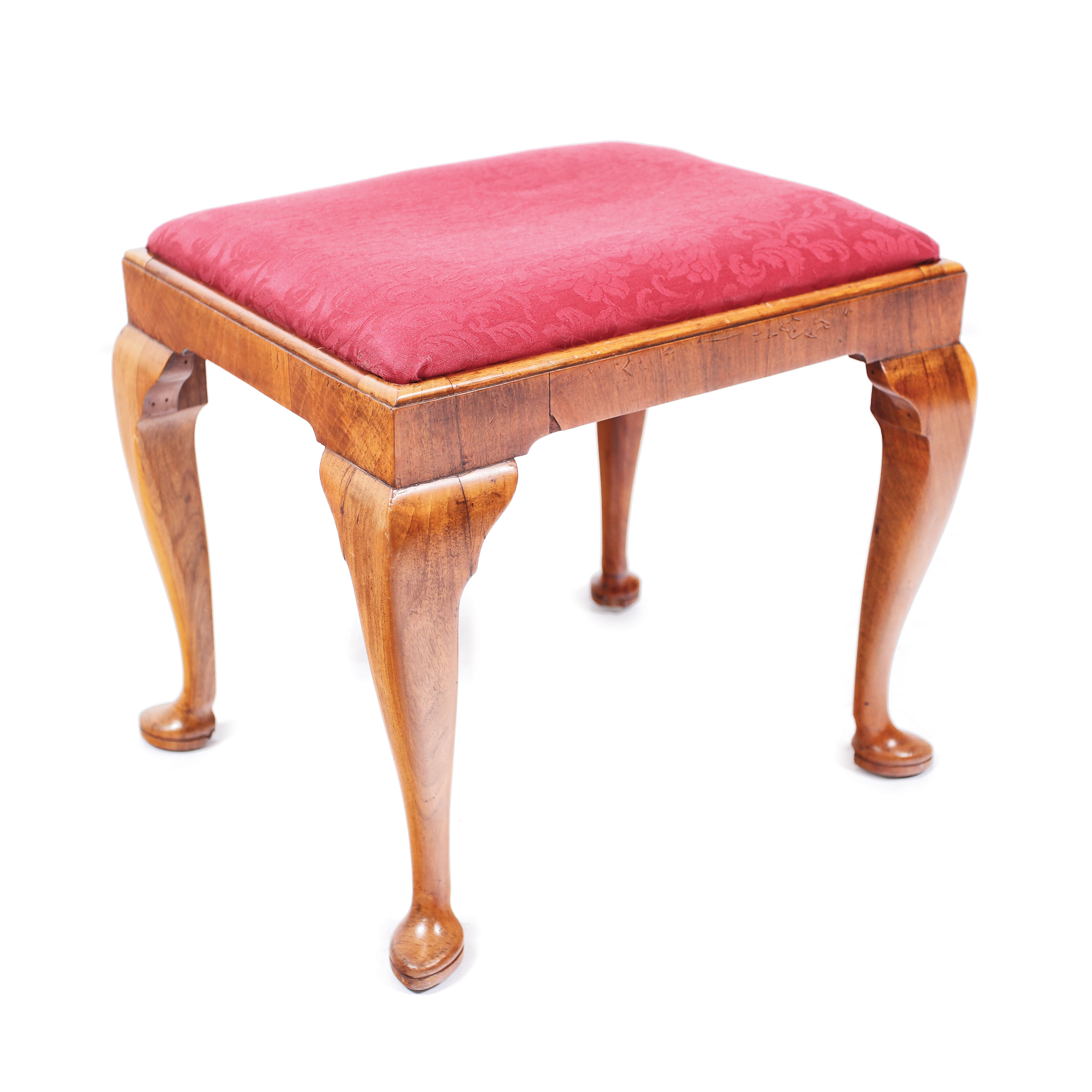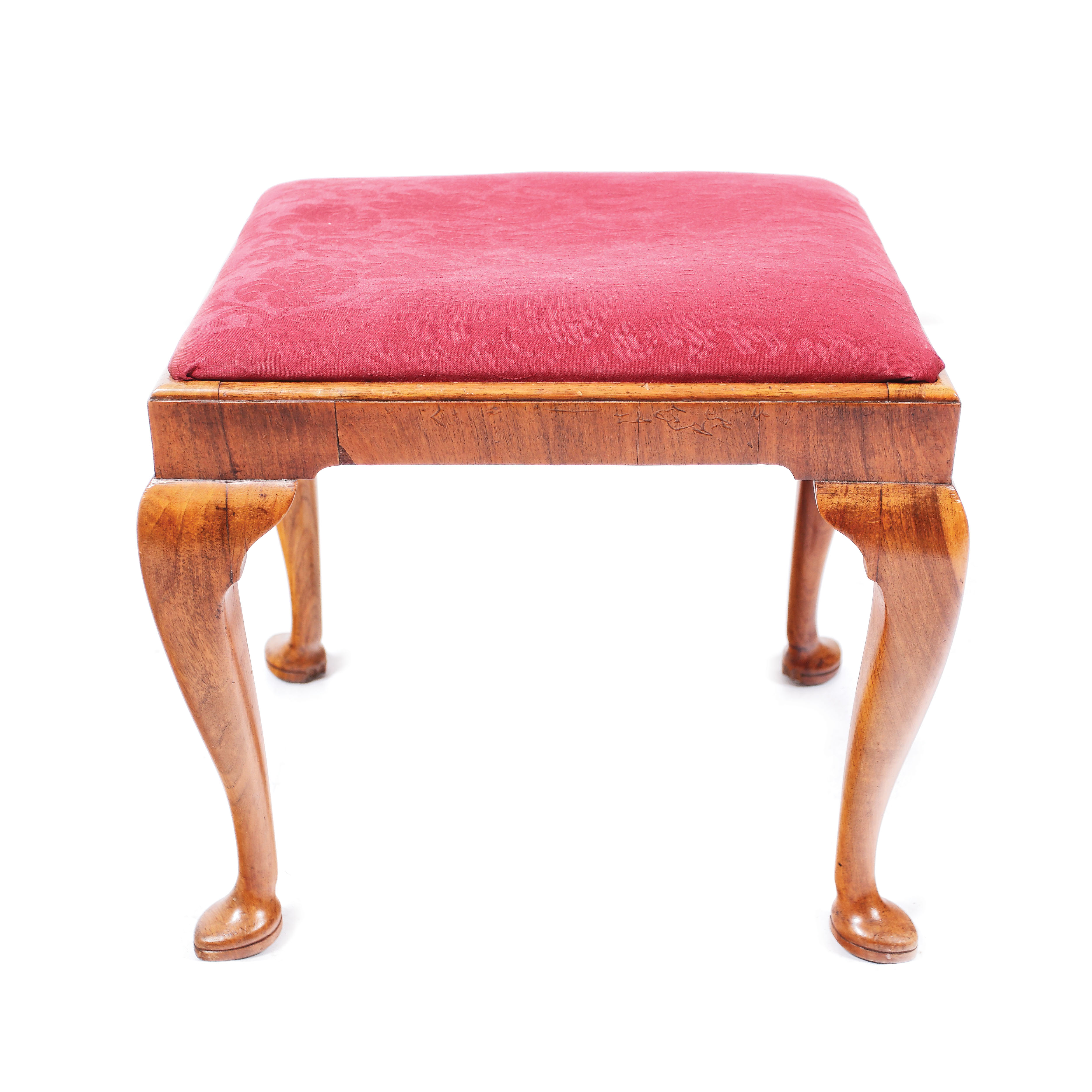 43. Taburet de inspirație Queen Anne, din lemn de nuc [Sec. XX]