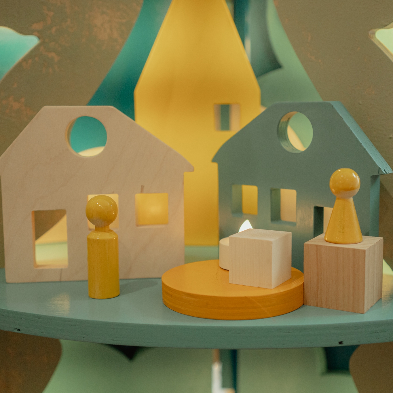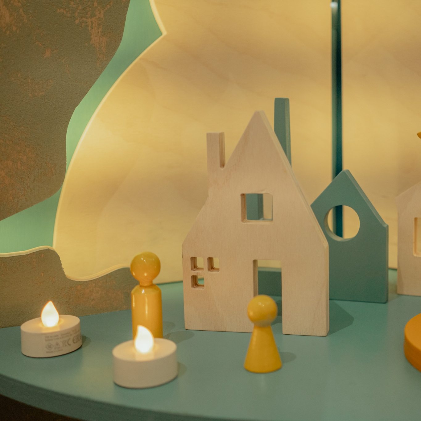 Bradul nostru este o poveste a unui copil scăldată într-o construcție impresionantă dusă pâna la scara unui brad de Crăciun ... precum povestea unui copil inclusă în măreția universului ...