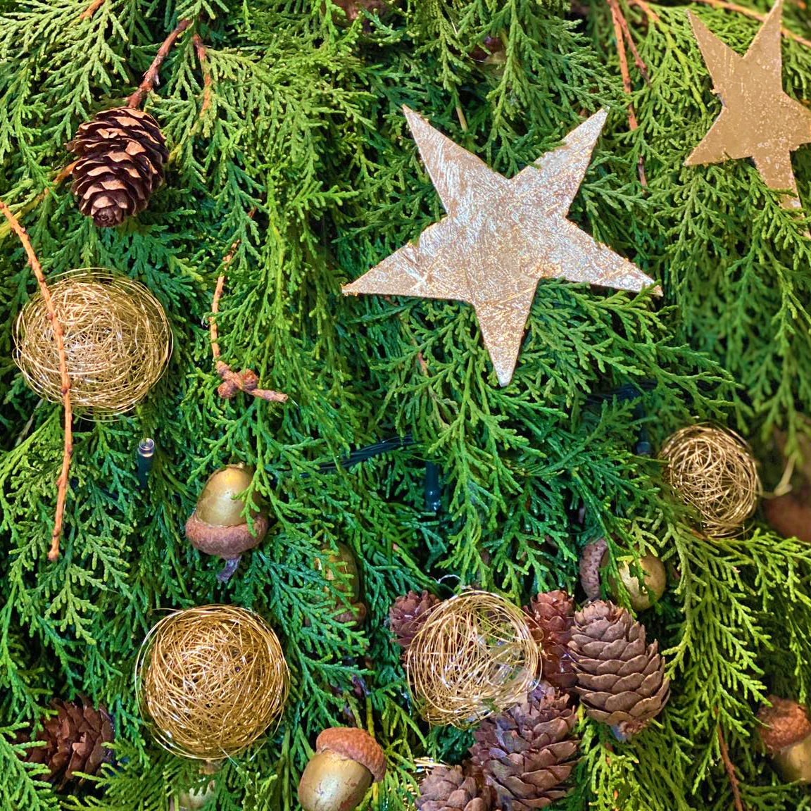 crenguțe de brad, conuri de brad, decorațiuni de pom, structură metalică