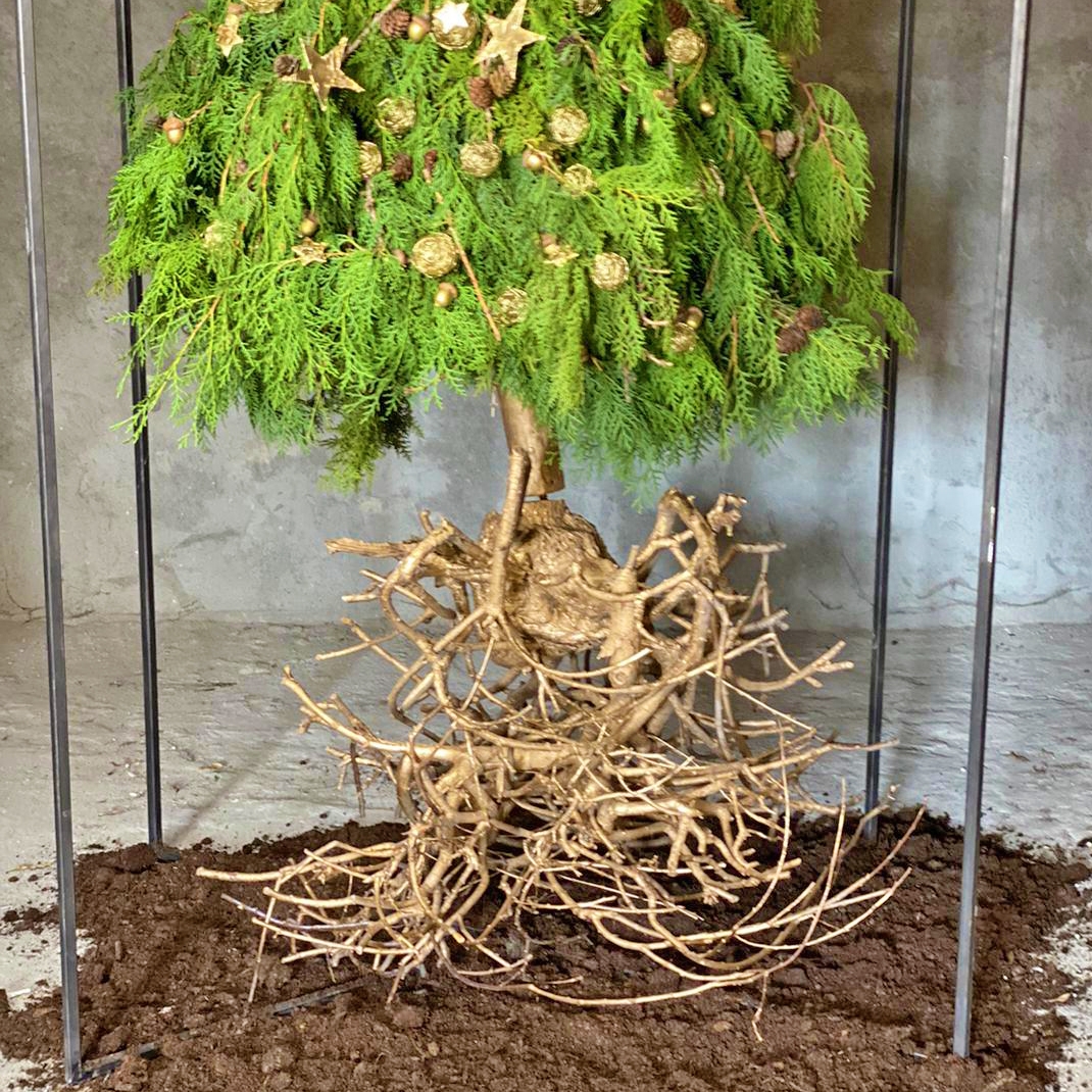 Manifest pentru normalitate și frumos - Aurul verde al Pământului Natura are rădăcinile de aur și inima verde. Odată smulse, ele îți pierd conexiunea cu energia vitală, iar inima verde se usucă și moare. În decembrie sunt cele mai multe “victime” udate de lacrimi verzi. Hai să nu fim complici la genocidul pădurilor! Hai să păstram “aurul verde” acolo unde-și are rădăcina, este cea mai frumoasă moștenire pe care o putem lăsa viitorului! Nicu Bocancea și floriștii de la Iris au creat o “bijuterie” vie din aur galben și aur verde pentru a arăta că frumusețea vieții rămâne acolo unde există conectarea la rădăcini. Florăriile Iris nu comercializează brazi tăiați, ci doar aranjamente diverse, în formă de brad, create din crenguțele de la baza brazilor care nu le afectează acestora viața și longevitatea.