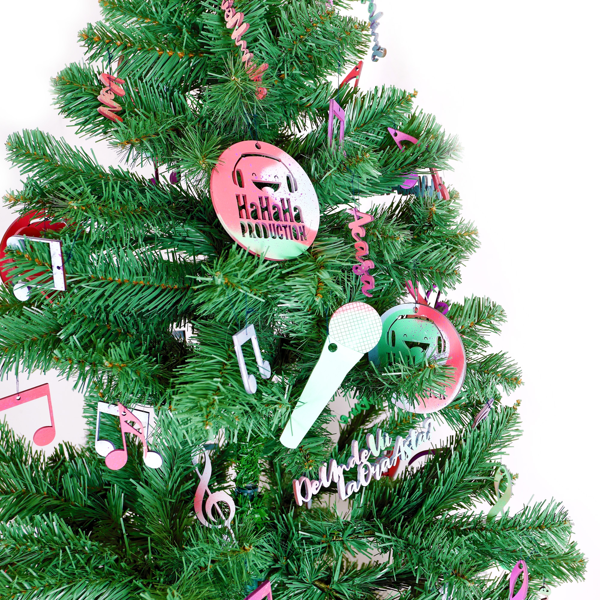 1. brad artificial, împodobit cu decorațiuni unicat; 2. spray pe chitară