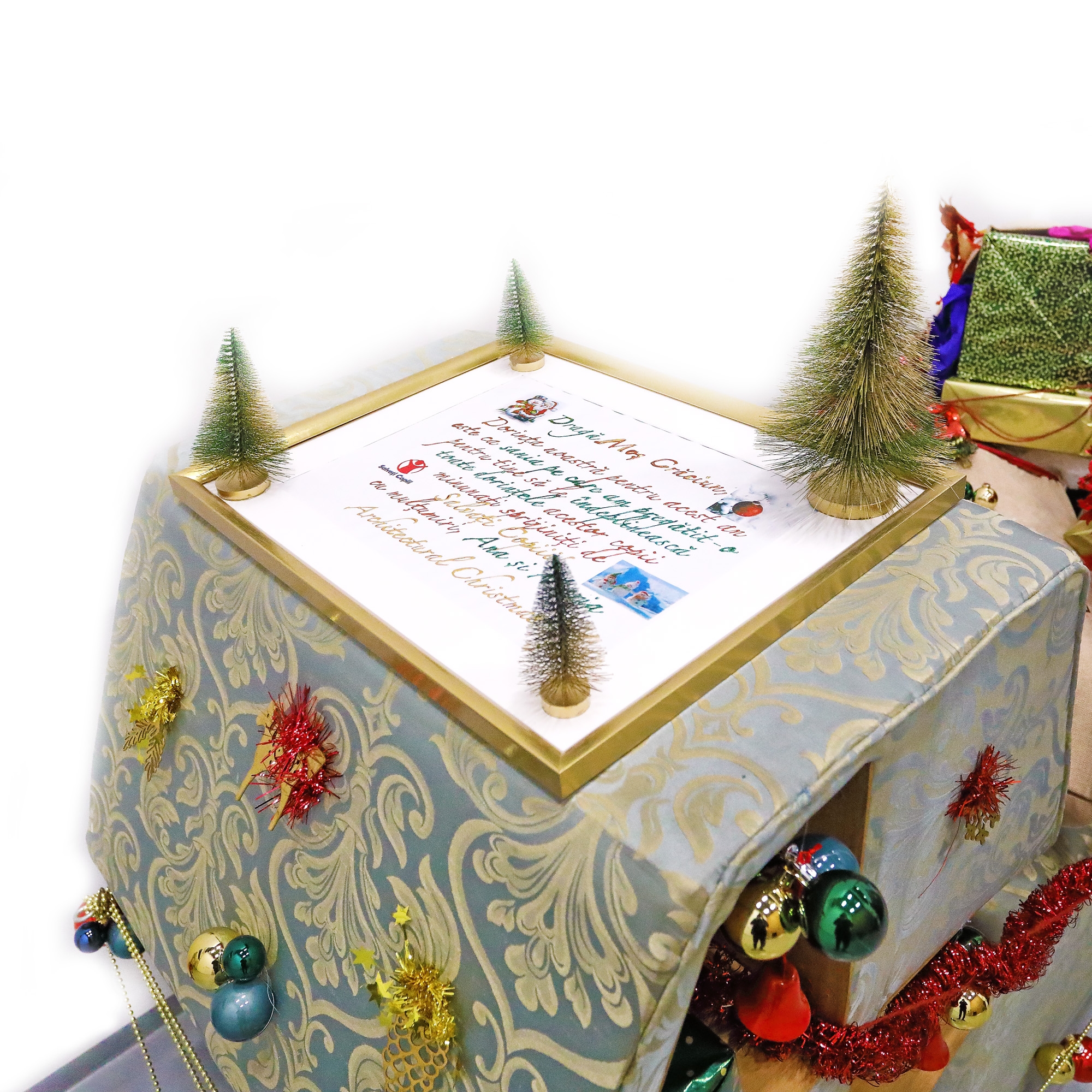 În acest an, 2020, Bradul nostru spune o poveste magica, despre cum visele se pot îndeplini pe aripi de nori. Moș Crăciun va veni cu această sanie magică concepută de noi pentru a putea ajunge în toate colțurile României, să împlinească dorințele tuturor celor care peste an au fost copii sau și-au păstrat sufletul de copil așteptând cu nerăbdare momentul magic al sărbătorii. Cine va licita pentru acest obiect devine „Moș Crăciun”; el va putea îndeplini dorințele si va primi la rândul său nu numai sania magică ce poartă cu sine cele mai arzătoare speranțe, ci și o piesă de mobilier care ii va aminti si peste ani de fapta sa bună. Atenție! Sania se va transforma doar după ce va ajunge la toți copiii care o așteaptă, iar decorațiunile de pe ea vor străluci împodobind Crăciunul și în acest an! (Ana Mohonea & Maria Mohonea – Architectural Christmas)