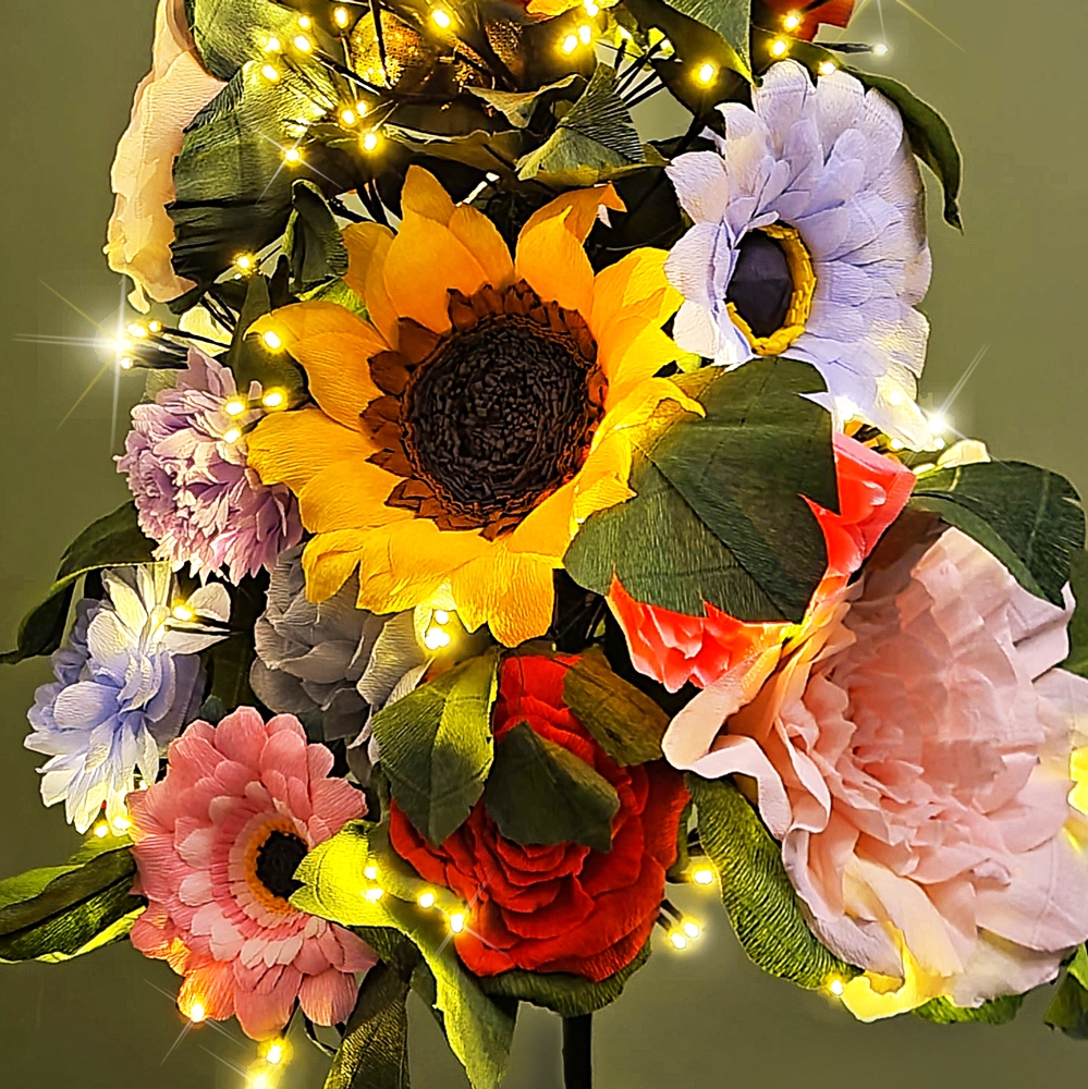 Bradul de anul acesta este o exprimare a schimbării ce trebuie să aibă loc pe fondul perioadei prin care trecem, o exprimare a provocărilor personale și profesionale, menită să ducă omenirea către evoluție. Este un obiect decorativ ce contrazice formalitatea bradului de Crăciun, ce presară culoare în ochii privitorului, îl îmbie la bucurie, oferindu-i o explozie de emoții și gânduri pozitive în viziune. De asemenea, își propune să fie o expresie a primăverii în plină iarnă, un colț de soare menit să încălzească inimile încordate ale visătorilor, îndemnându-i să renunțe la negativism. Florile sunt simbolul reînvierii și adaptării la o noua viață. Toate piesele ce compun acest brad decorativ au fost confecționate manual, începând de la tija principală ornată cu leduri, până la piesele florale făcute petală cu petală. Totodată, frunzele sunt gândite să creeze un buchet complet care, împreună cu globurile aurii montate individual, să creeze o instalație unicat menită să decoreze spațiul asemeni unei bijuterii deosebite