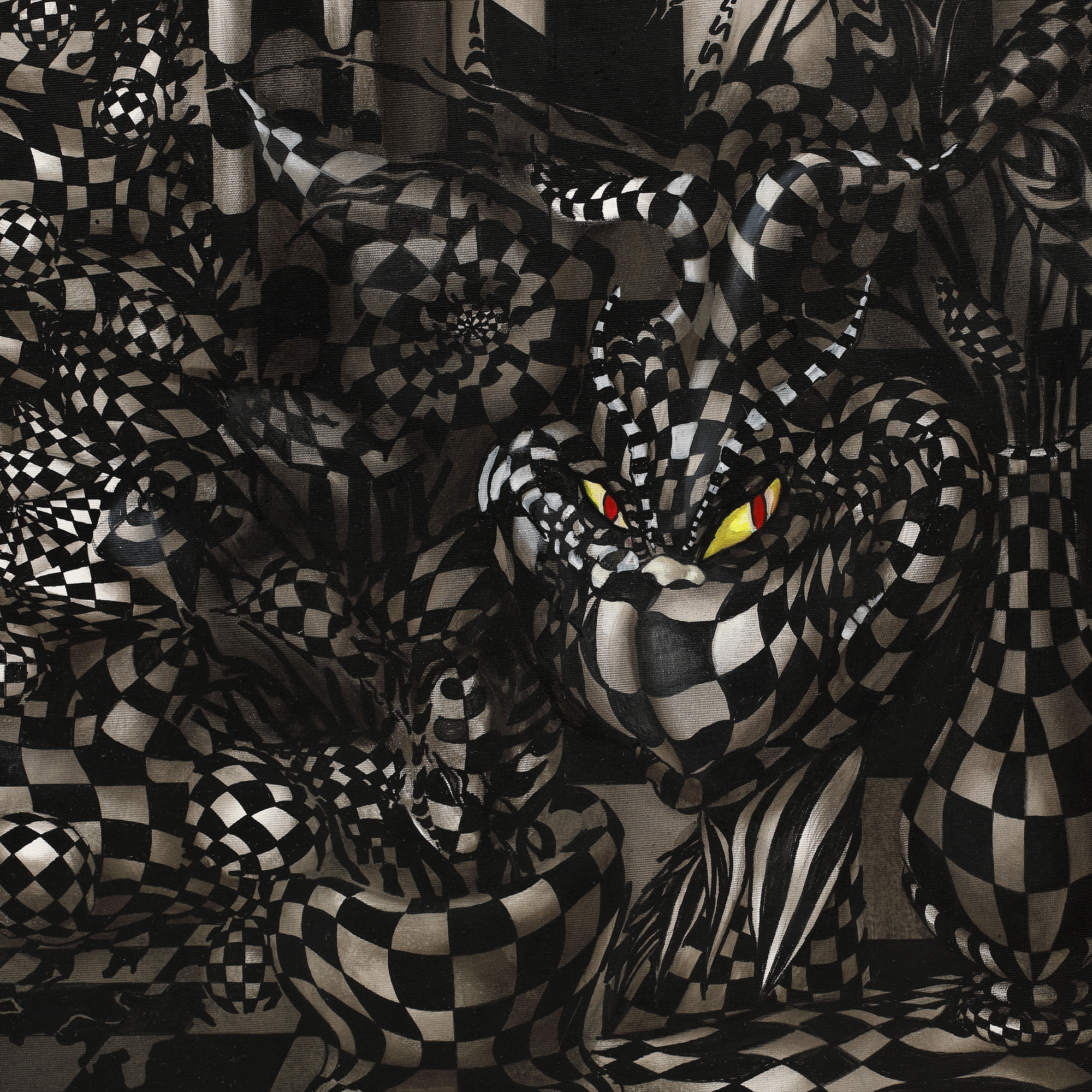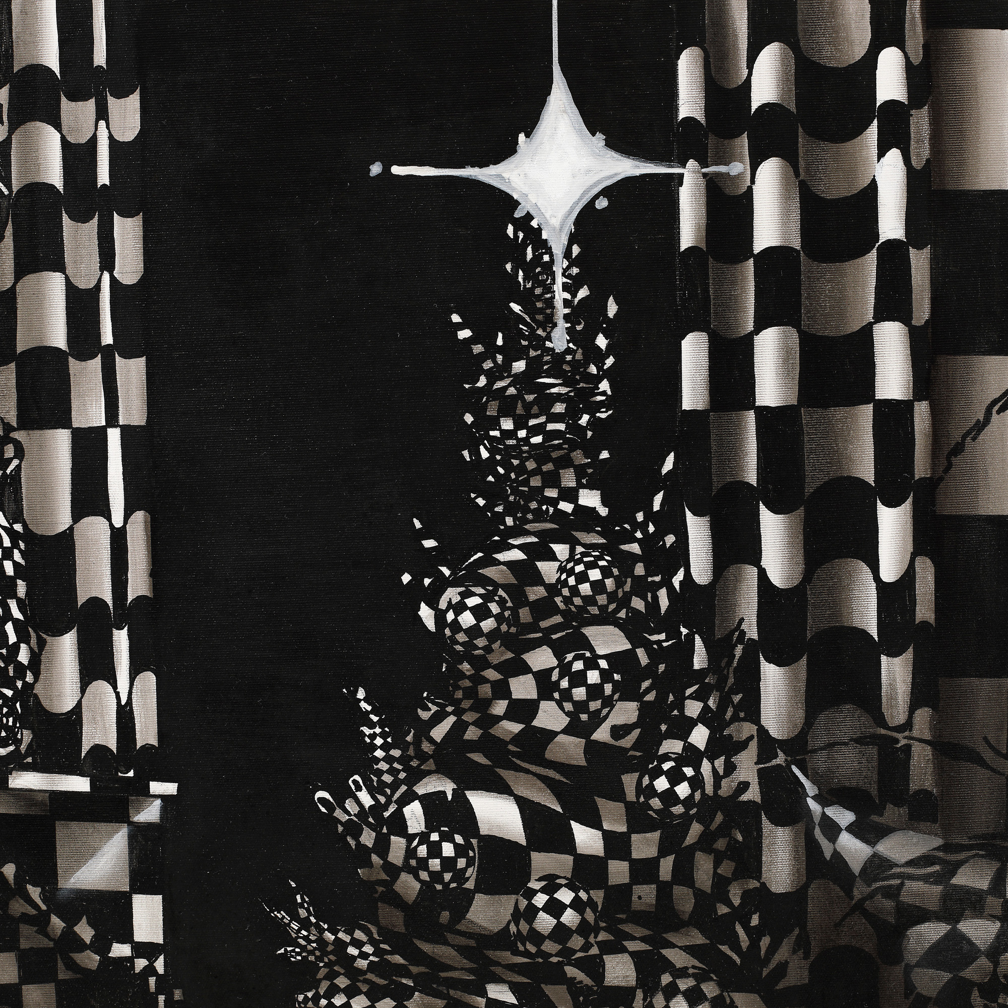 Lucrarea ne provoaca sa descifrăm singuri acest cod binar ce stă la baza unei compoziții surprinzătoare. Ne amintește de o temă aparent călduroasă care capată intrigă prin prezența faimosului personaj (Grinch) care deturnează imaginea perfectă a sărbătorilor de iarna (in acest caz culorile). Prin efectele de volum si spațialitate specifice curentului Op art, artistul construiește imaginea celui mai elegant și dinamic Craciun.