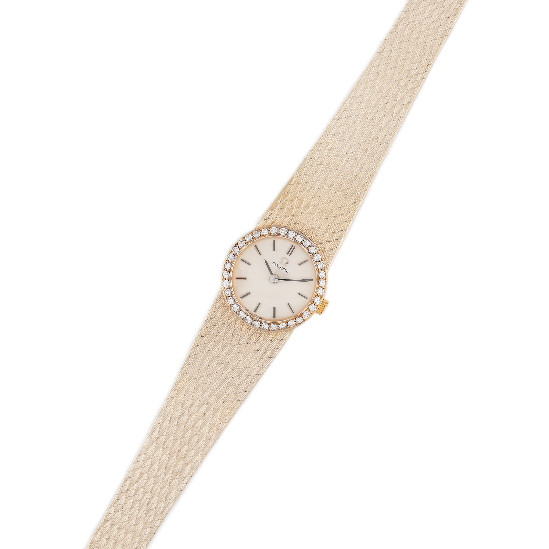 13. Ceas Omega din aur alb, de mână, de damă, cu bezelul ornat cu diamante [Cca. 1960]