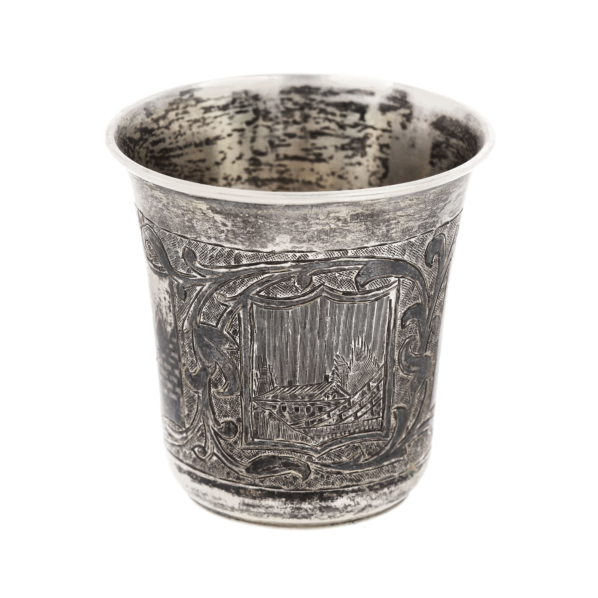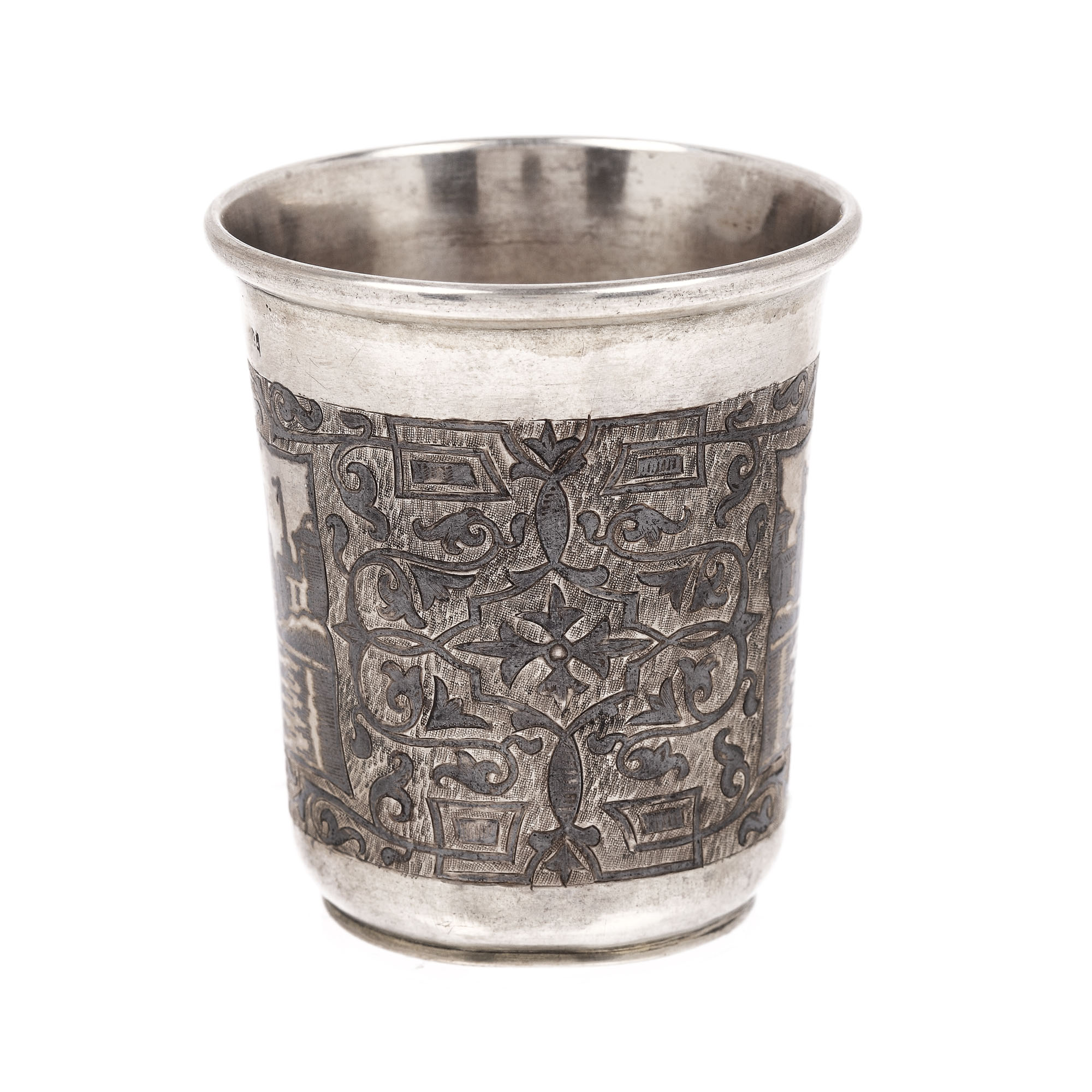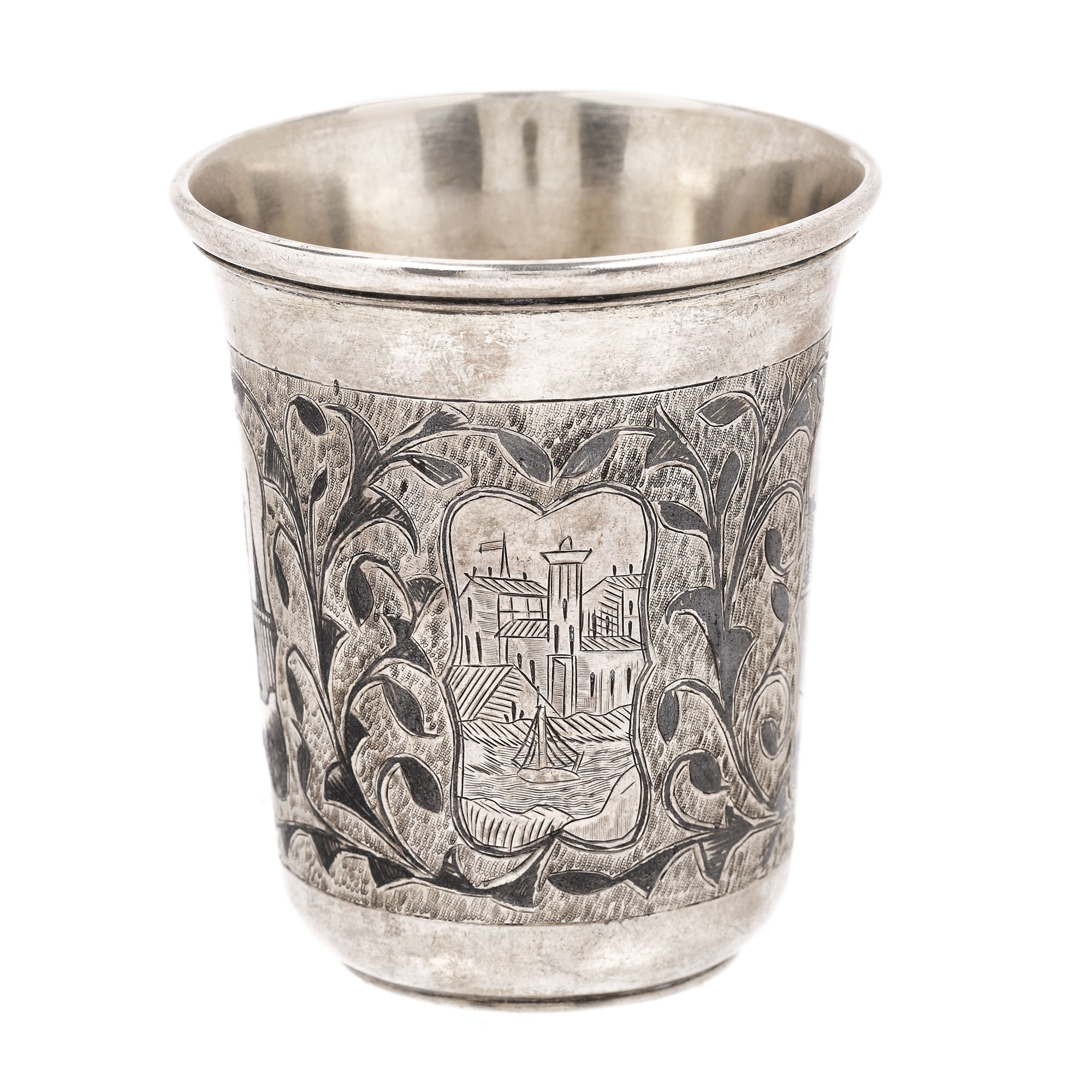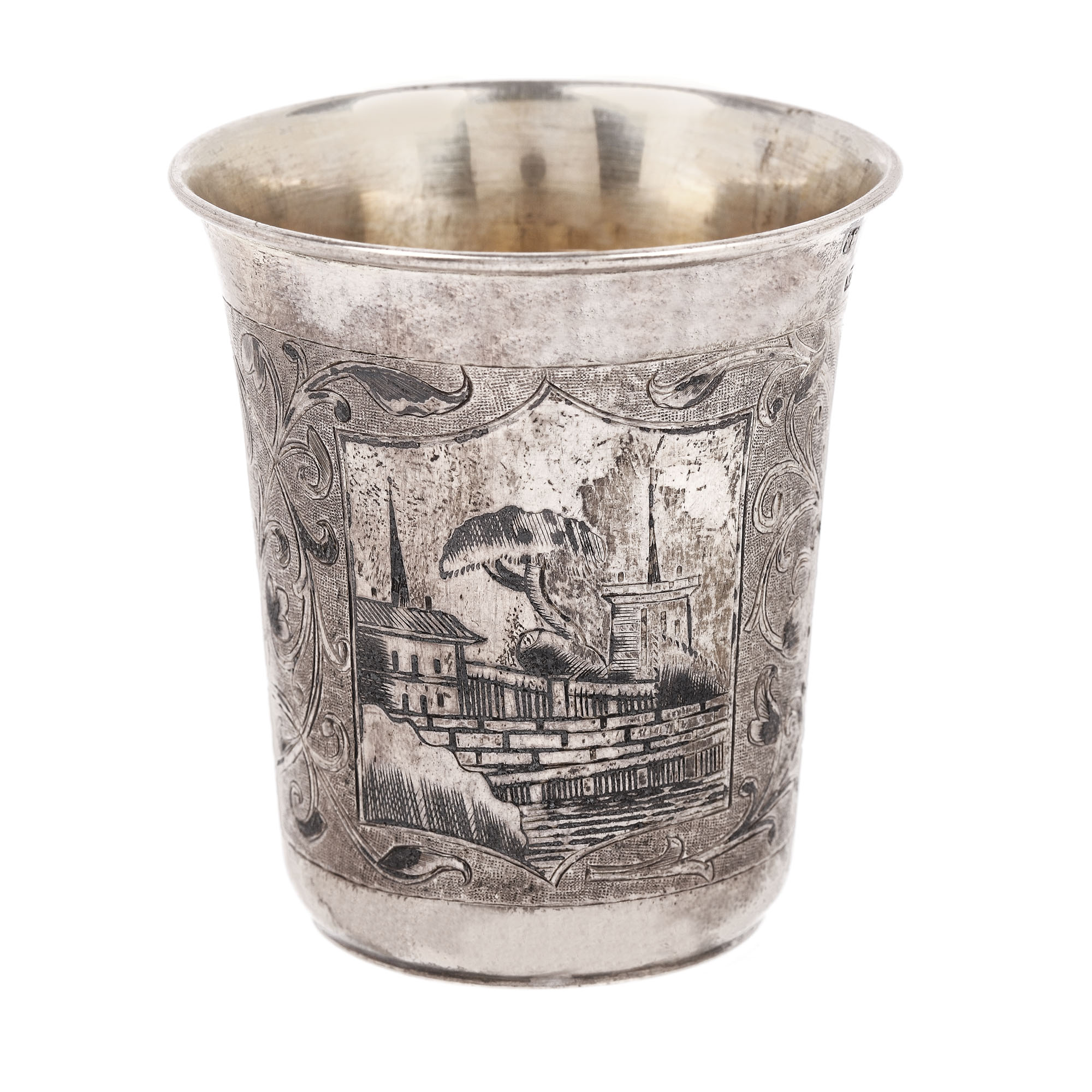 95. Pahar din argint rusesc, ornat cu niello și gravură reprezentând un port, 1858