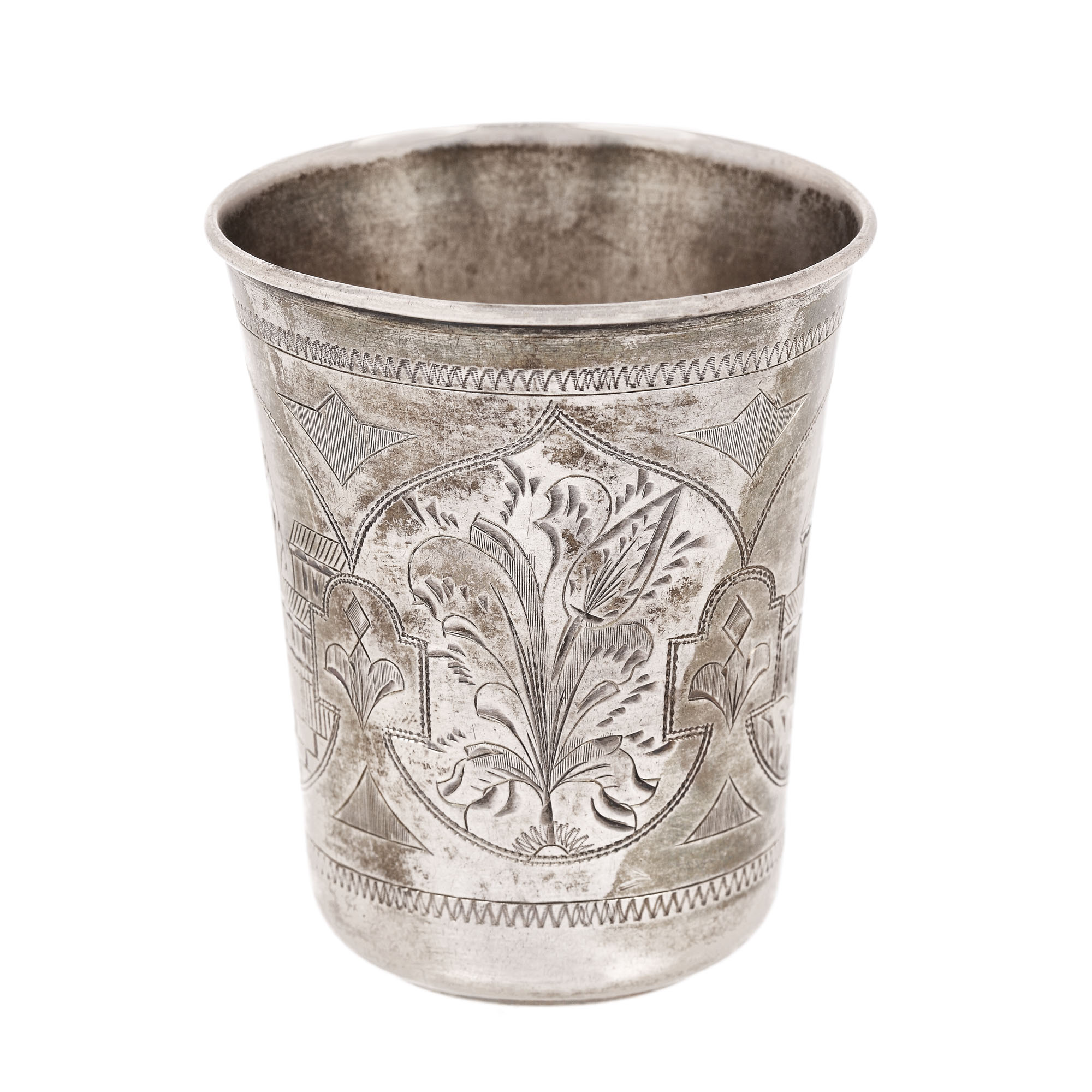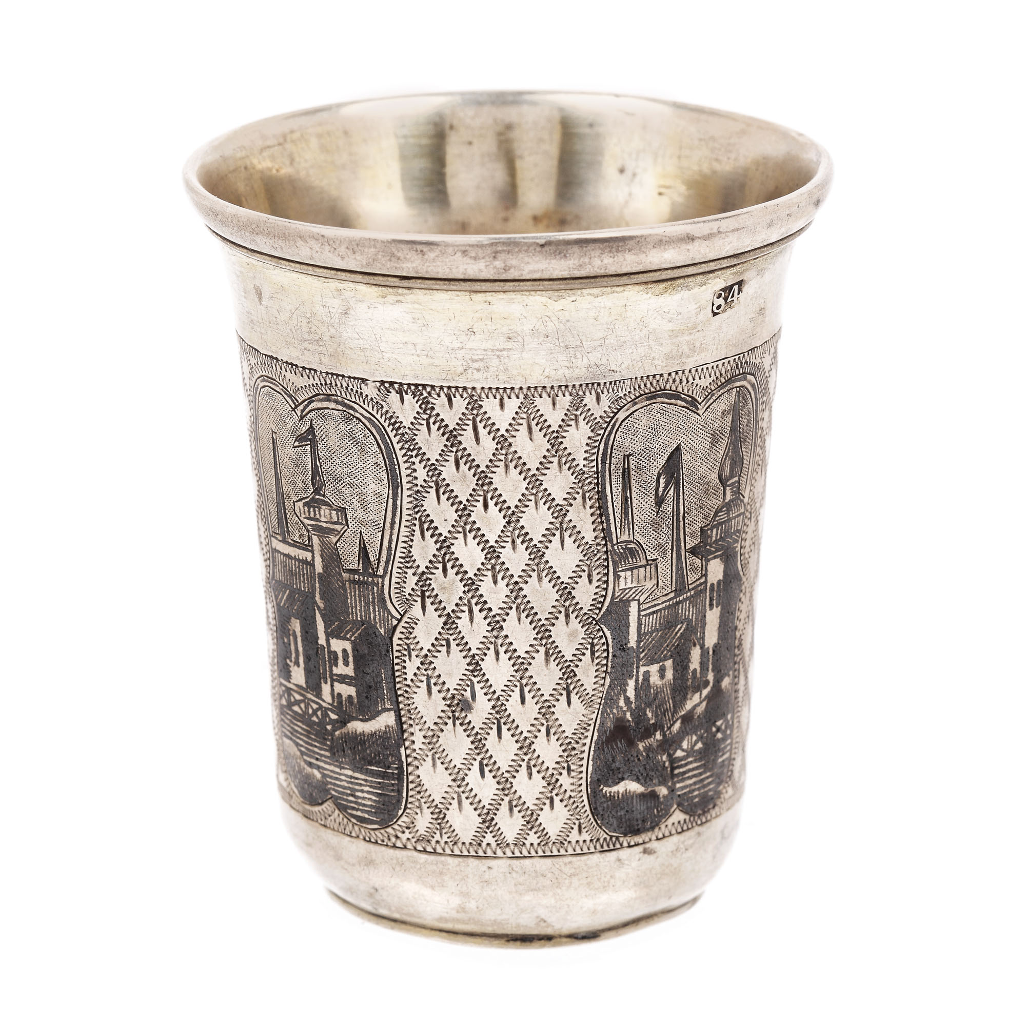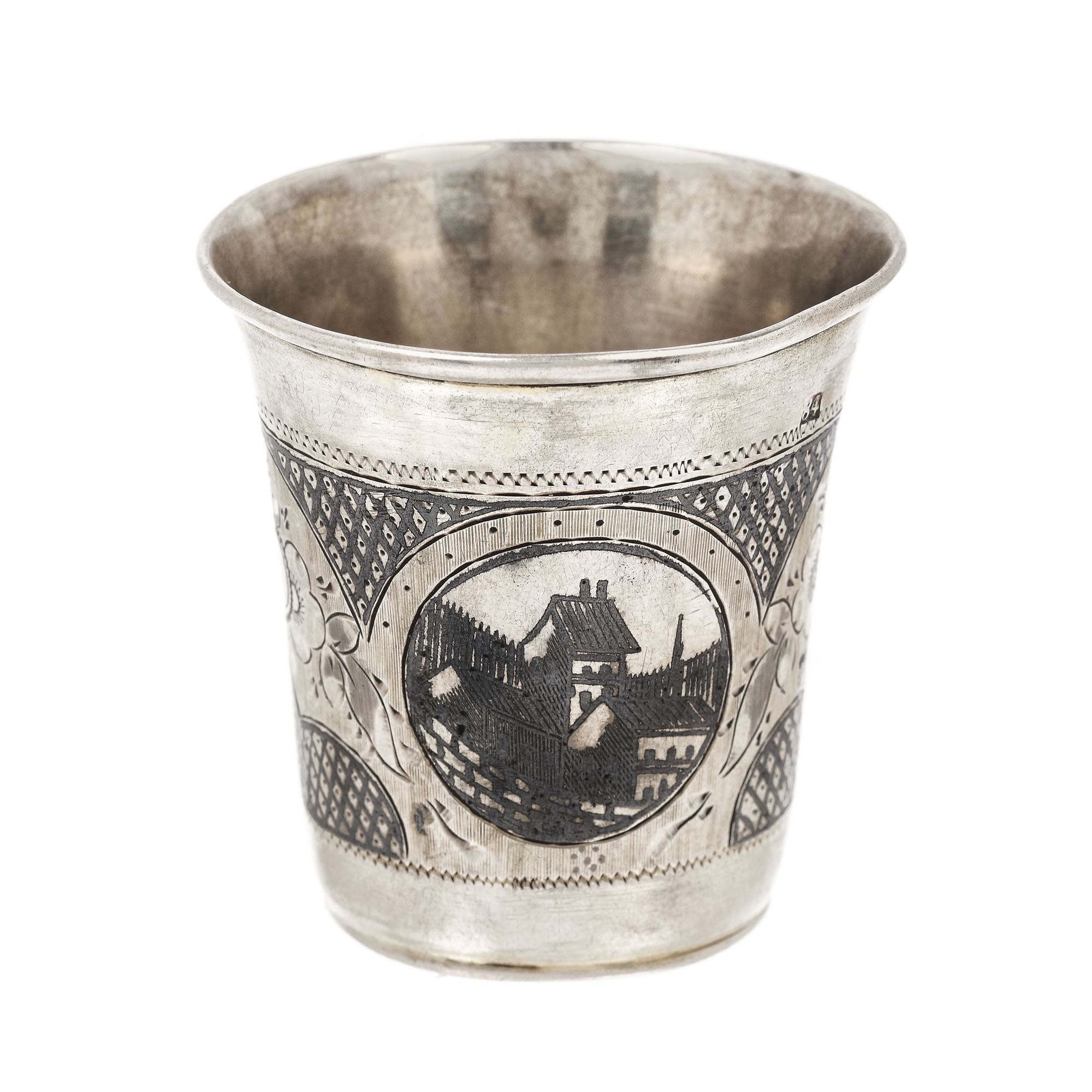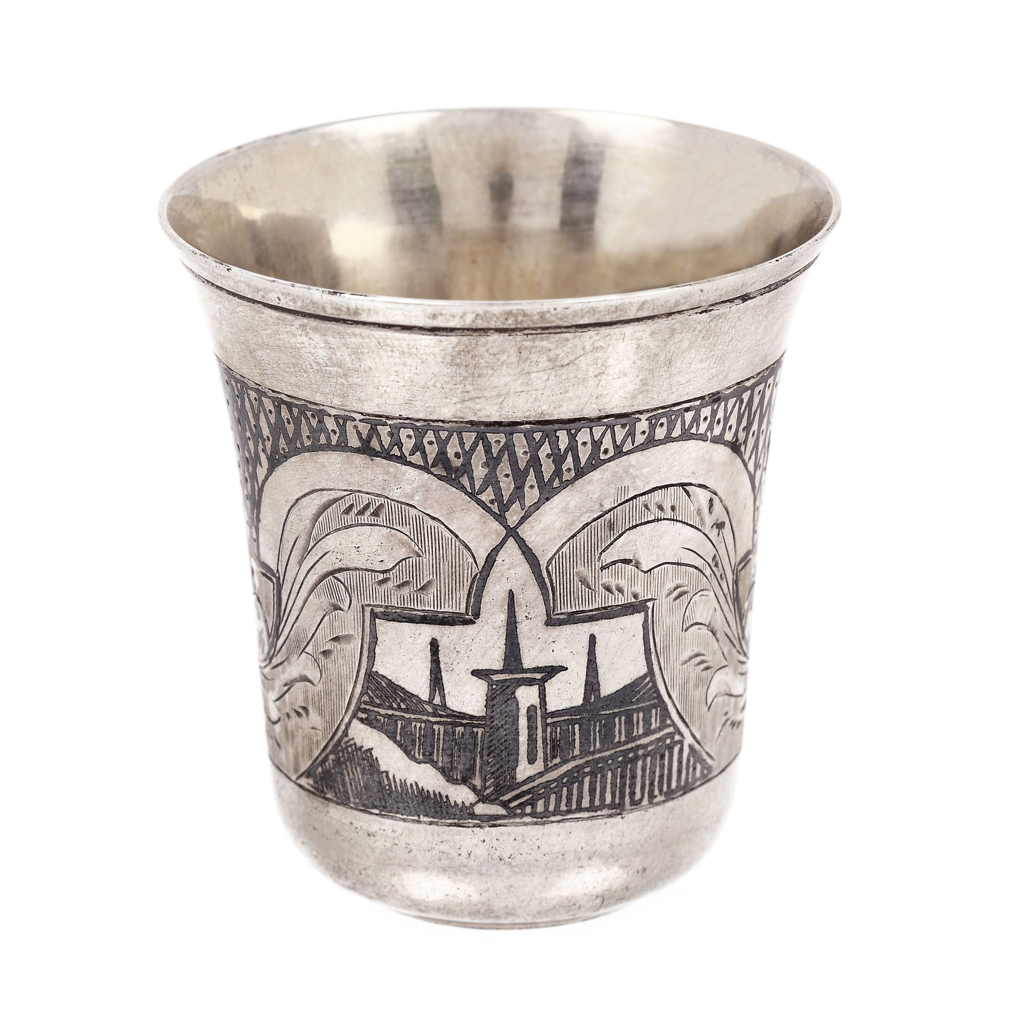 95. Pahar din argint rusesc, ornat cu niello și gravură reprezentând un port, 1858