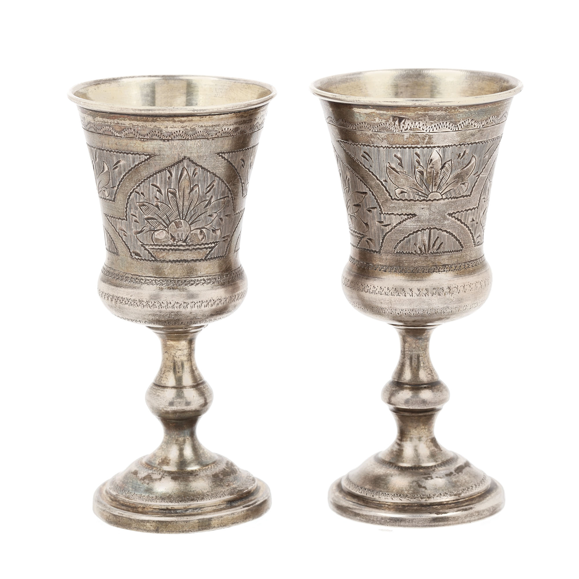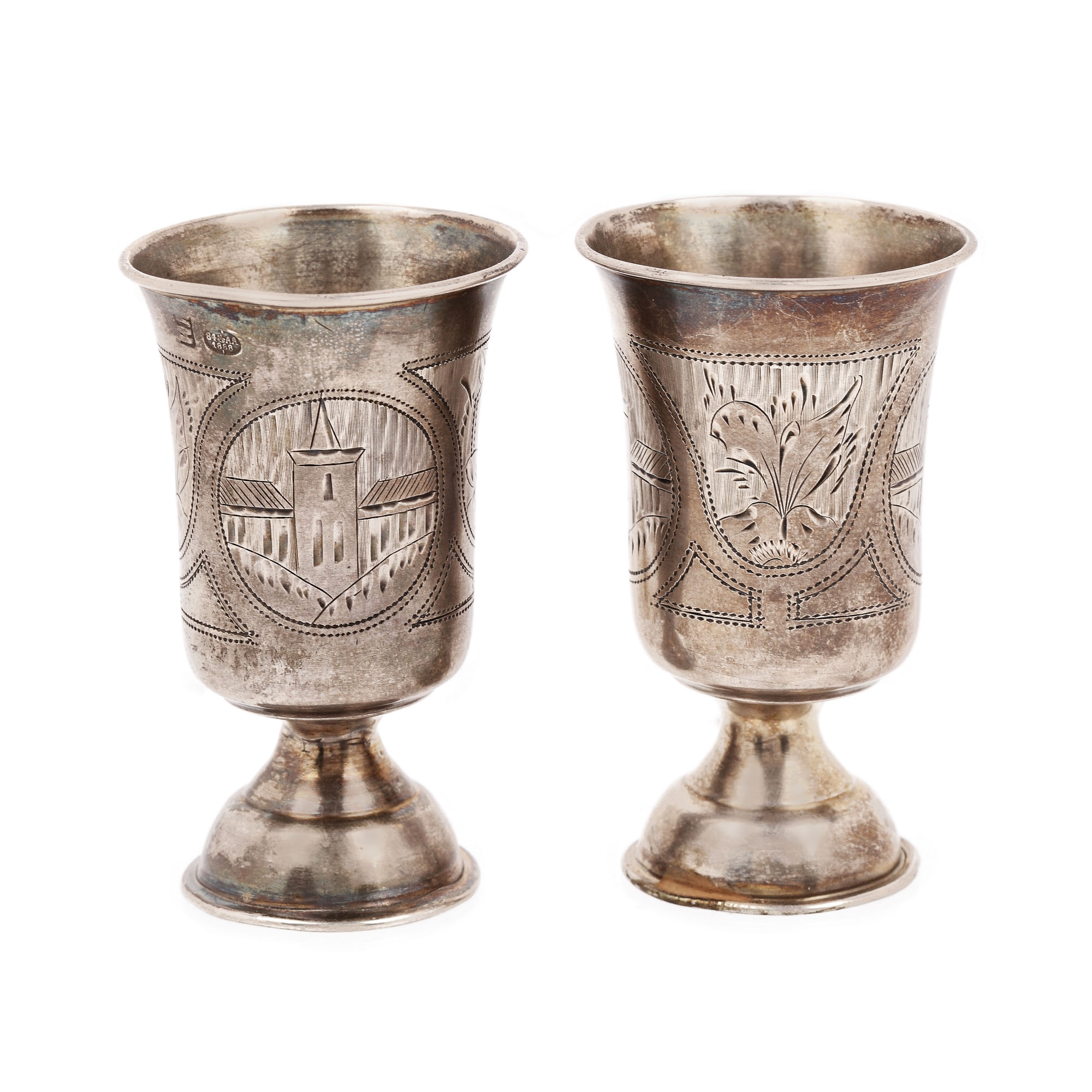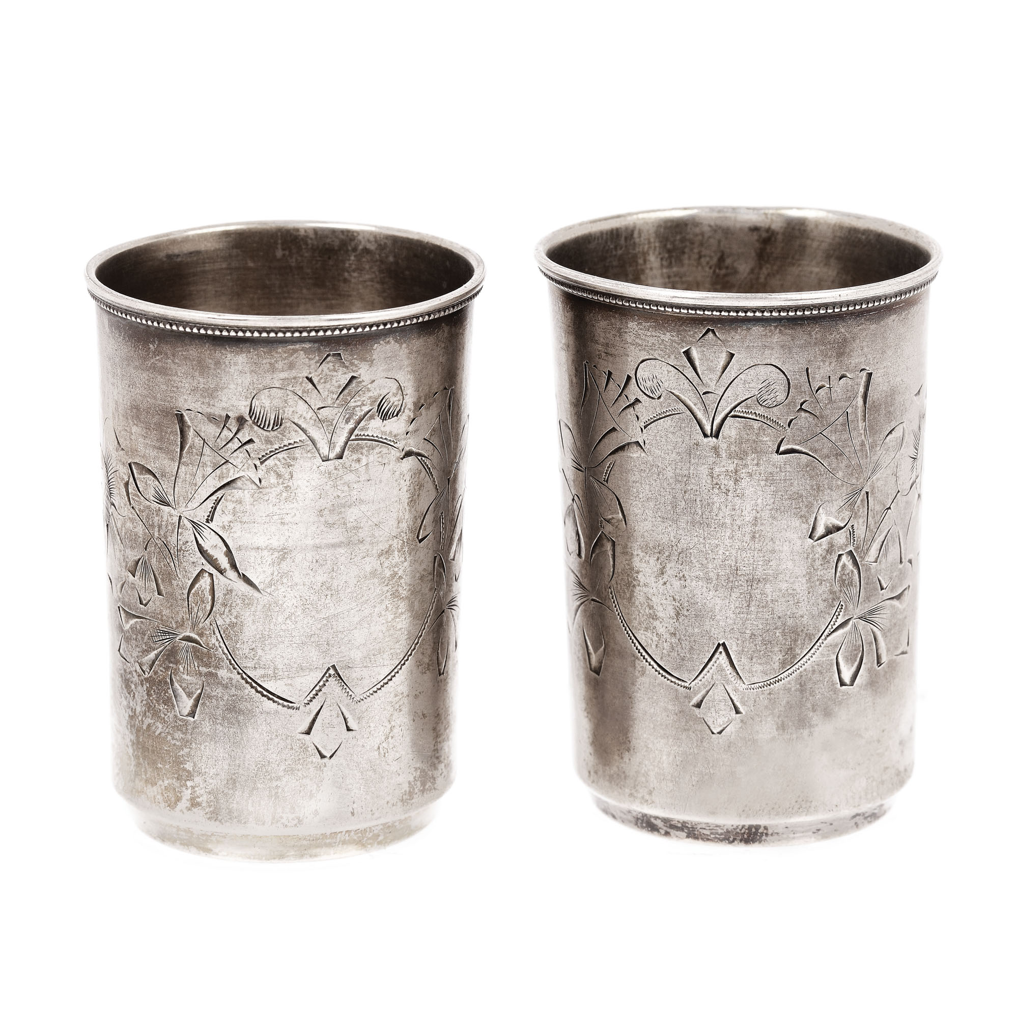 99. Pereche de pahare din argint rusesc, delicat gravată cu motive florale, după 1908