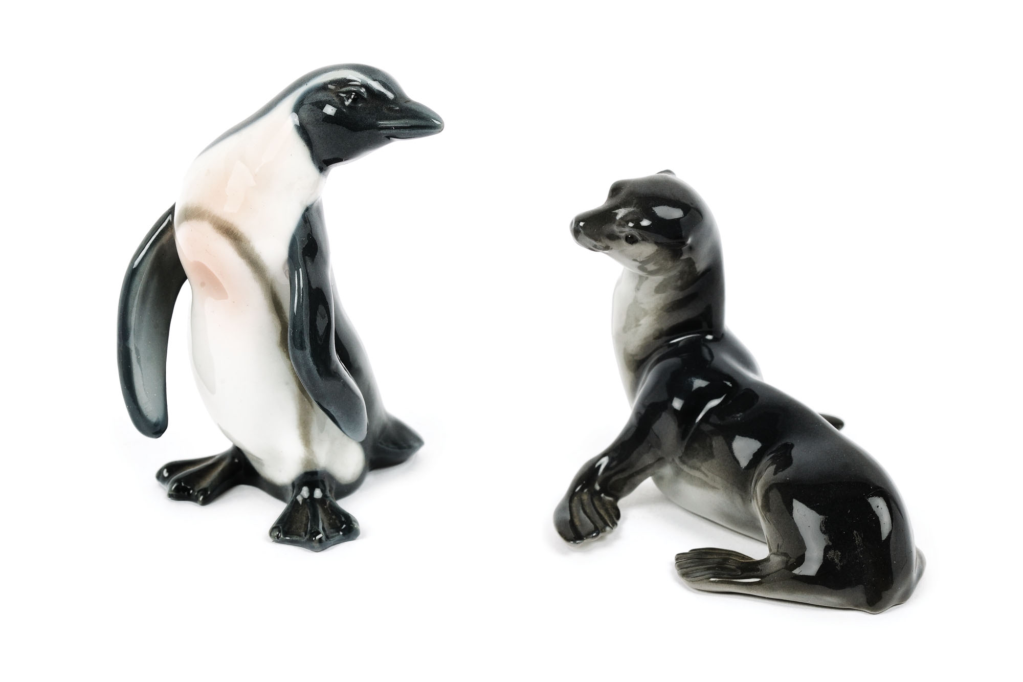 110. Pereche de figurine din porțelan glazurat, reprezentând o focă și un pinguin [Sec. XX]