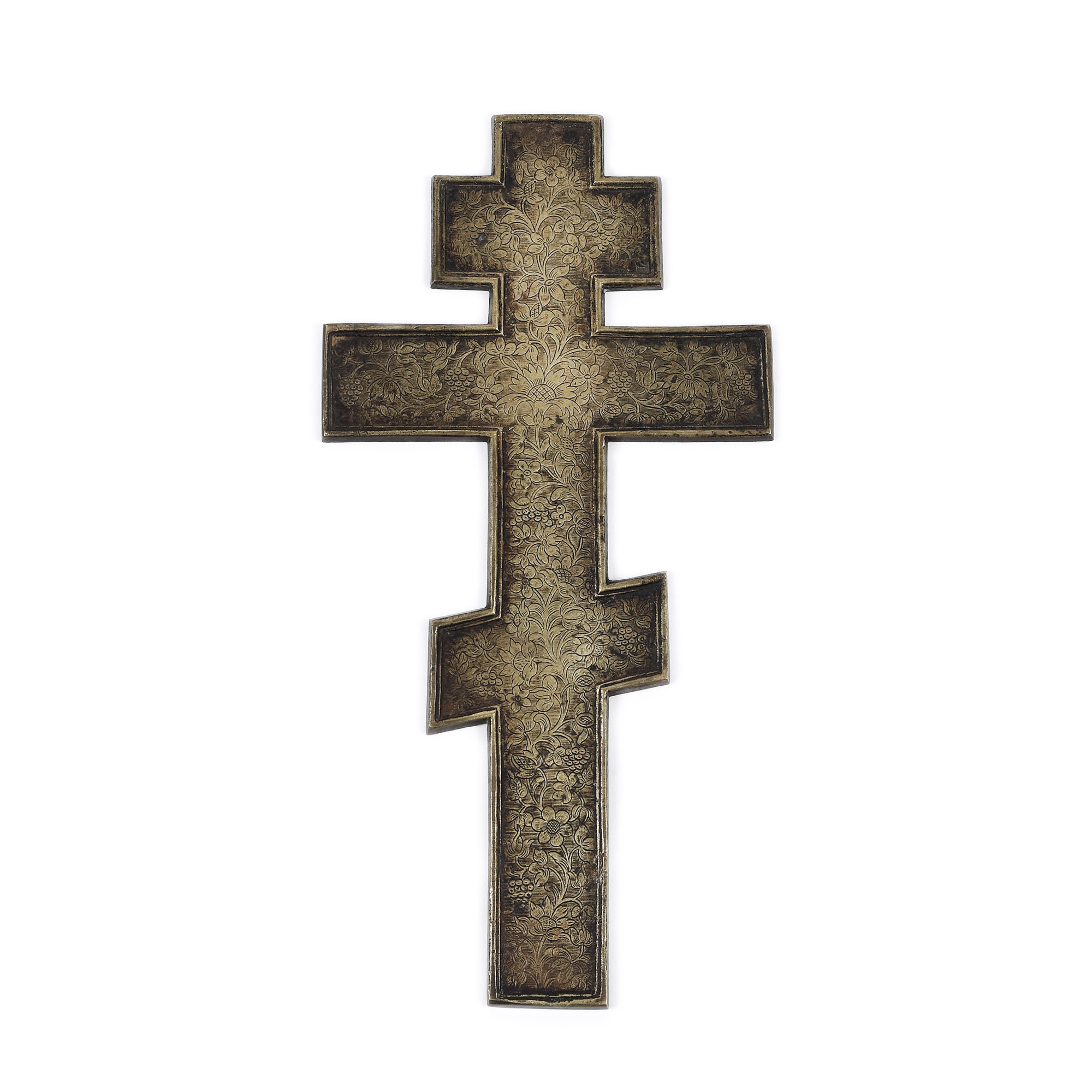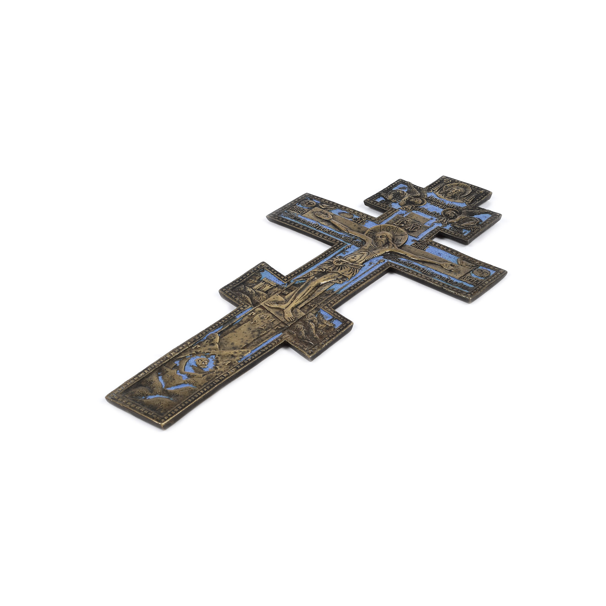17. Cruce de mână din alamă, decorată cu email, "Iisus Răstignit", atelier rusesc, sec. XIX, provine din colecţia Lucrezia și Ion Pacea
