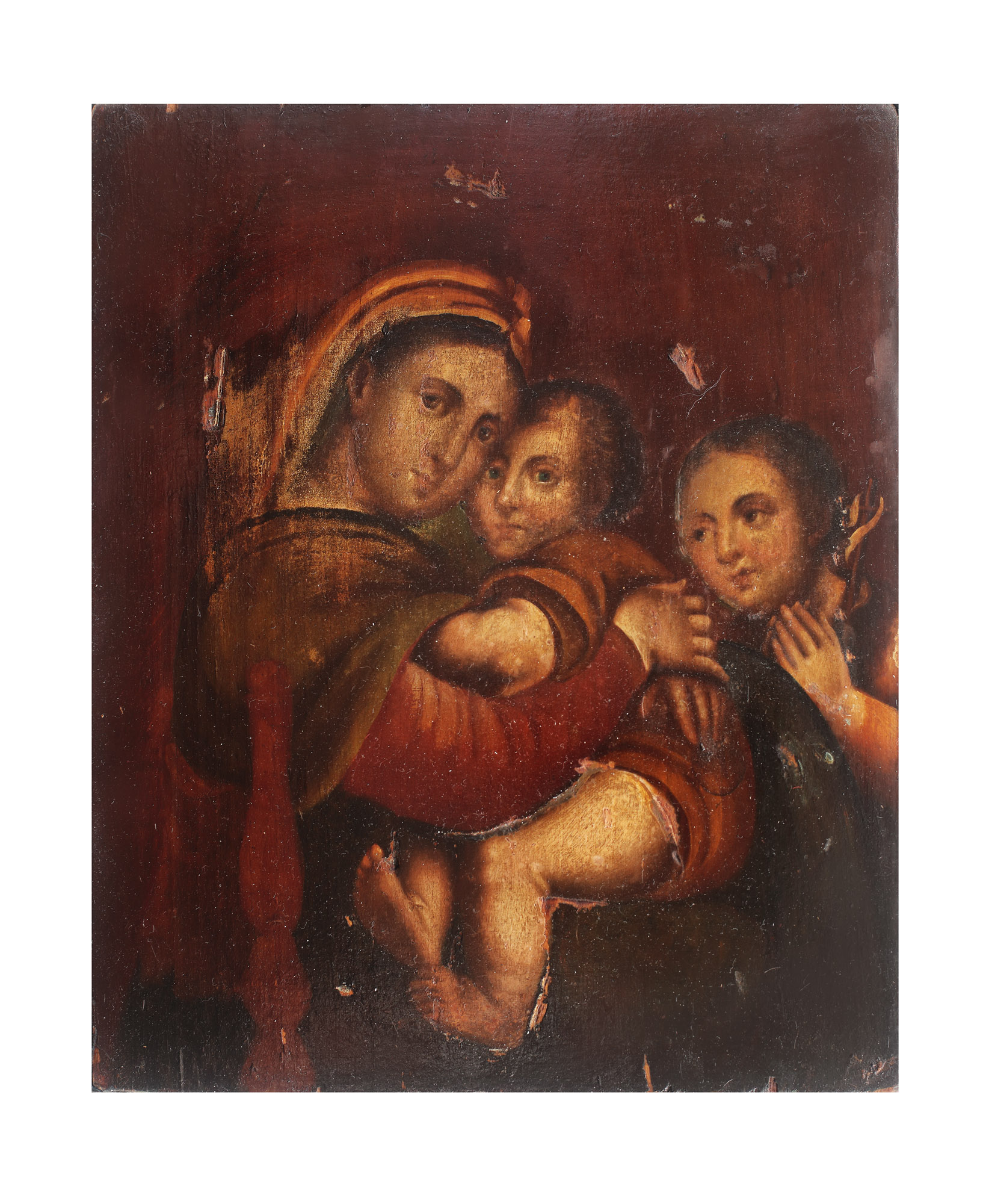 16. Icoană pe lemn, cu ferecătură, ”Maica Domnului cu Pruncul și Sfântul Ioan Botezătorul”, școală de influență catolică, sec. XIX, provine din colecţia Lucrezia și Ion Pacea
