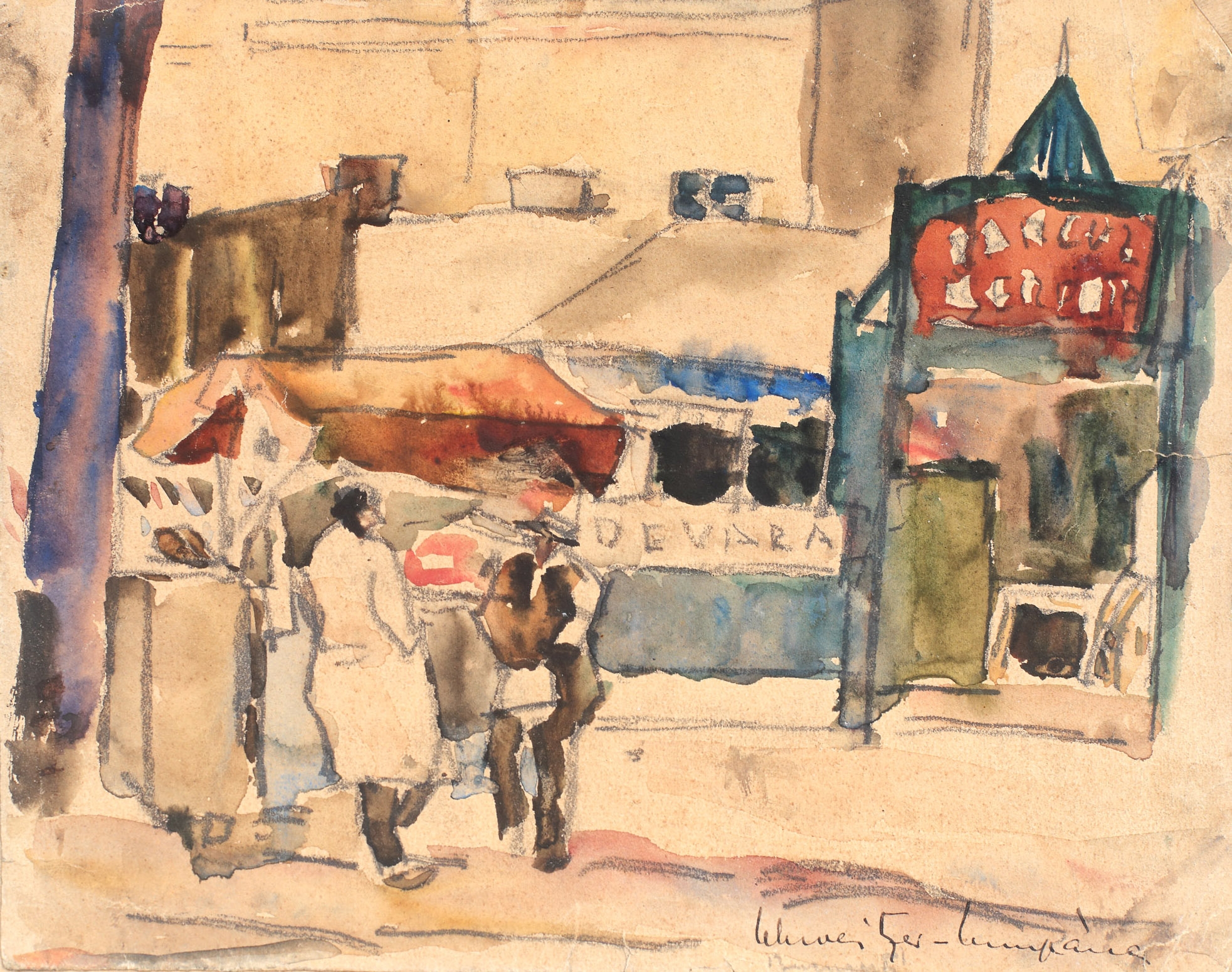 acuarelă pe hârtie lipită pe carton