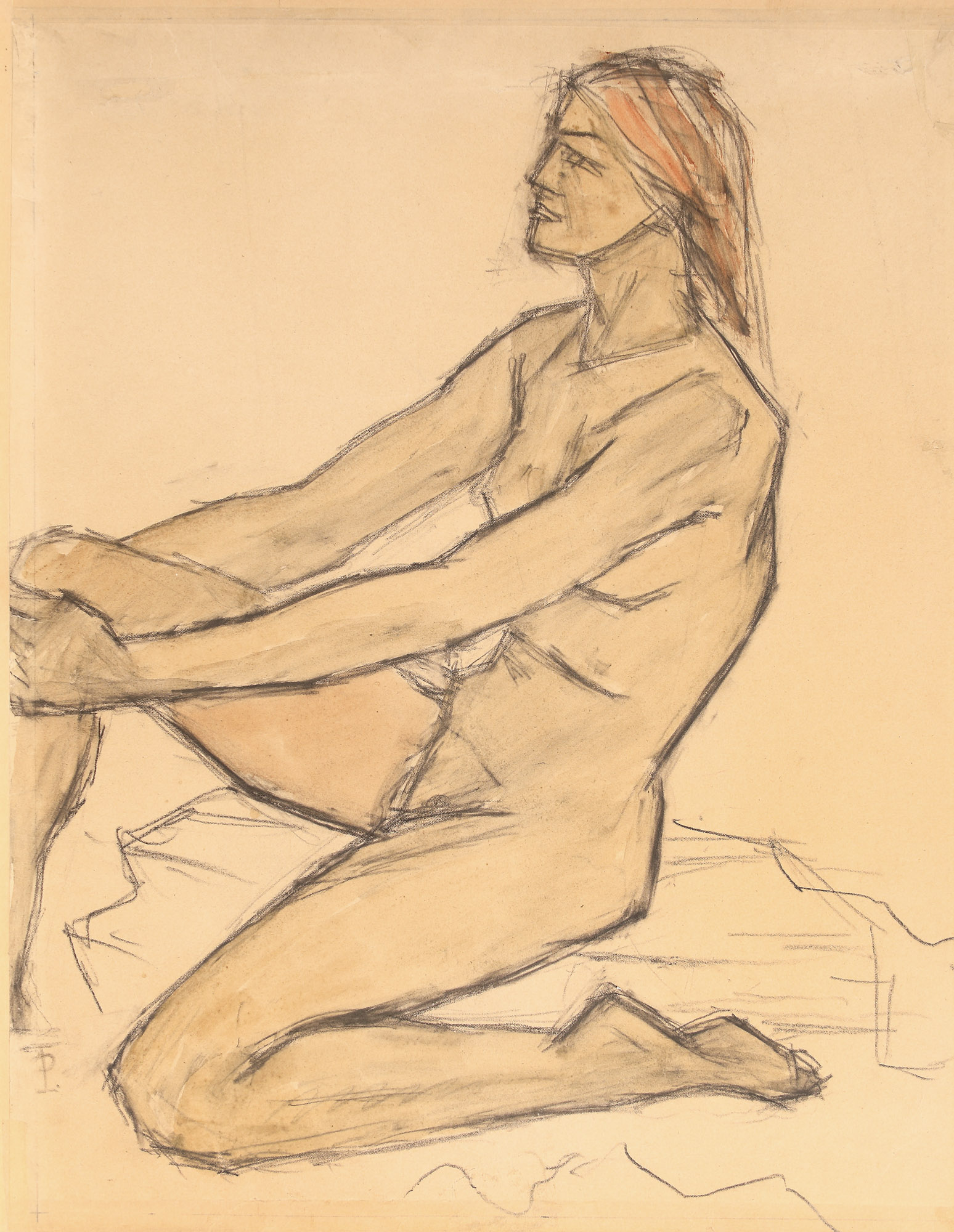 semnat stânga jos, în monogramă, în creion, ”TP”