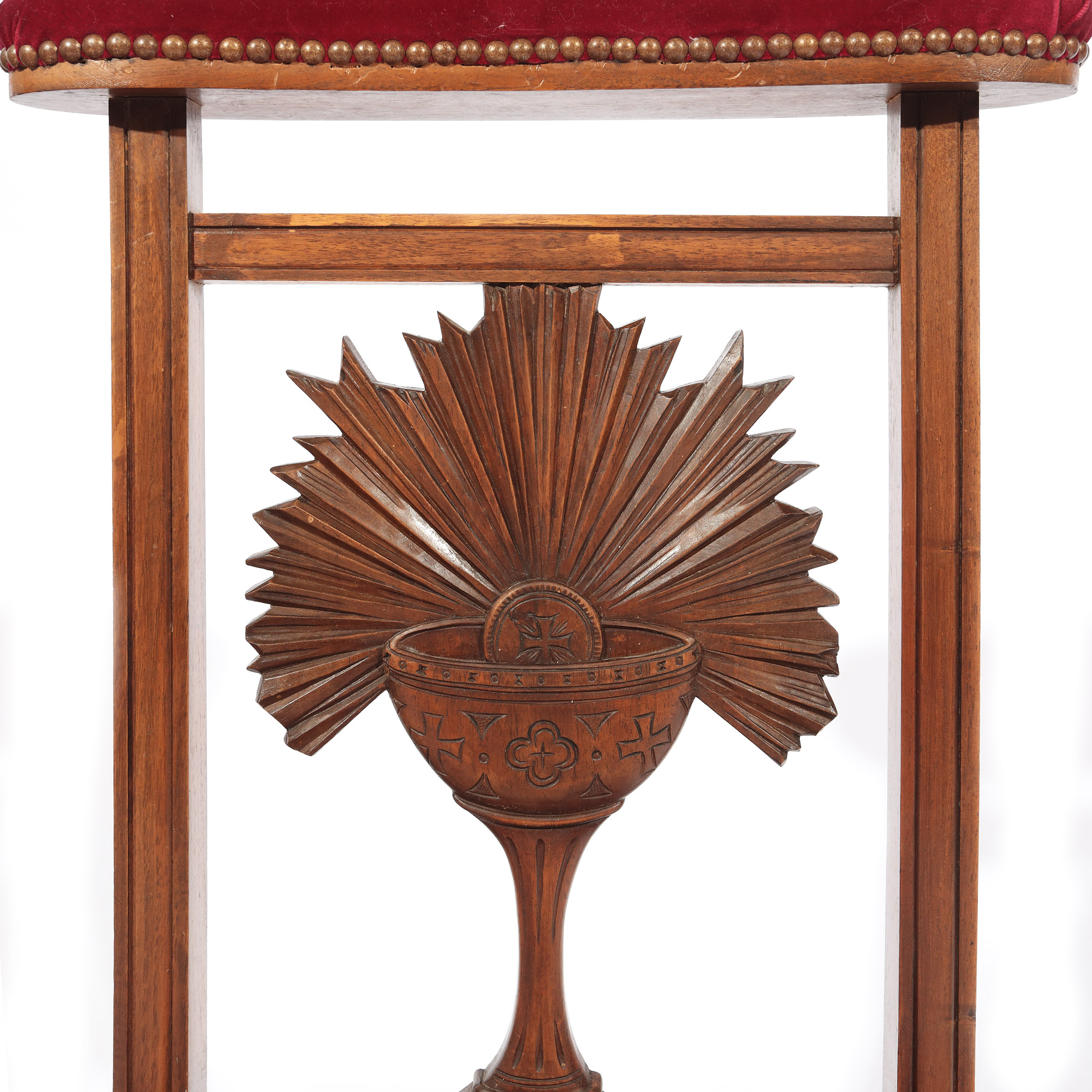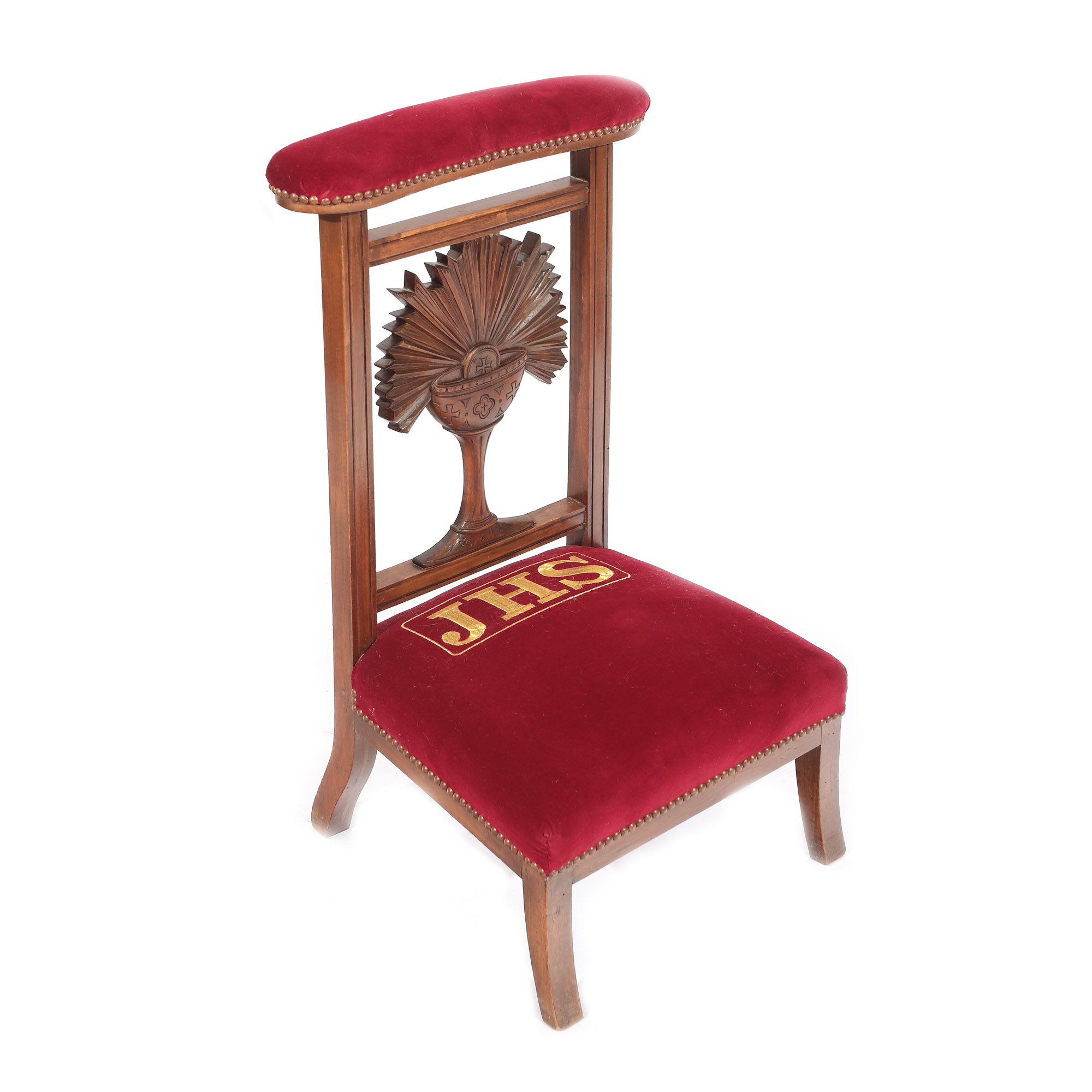 18. Prie-dieu, scaun pentru rugăciune, decorat cu monograma lui Iisus, provine din colecția Lucrezia și Ion Pacea [cca. 1970]