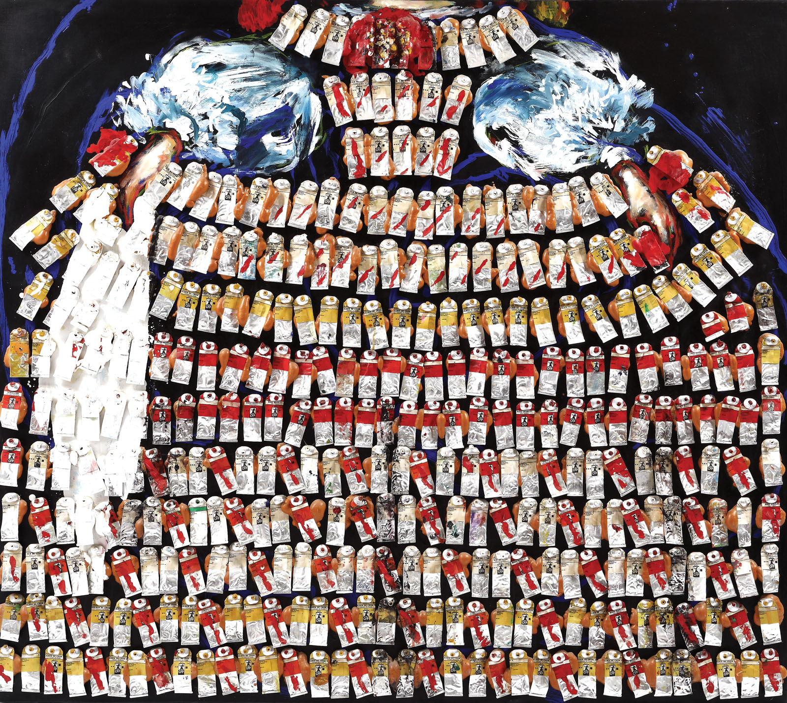 1. ulei pe pânză; 2. ulei, spumă poliuretanică și aplicații de tuburi de acuarelă