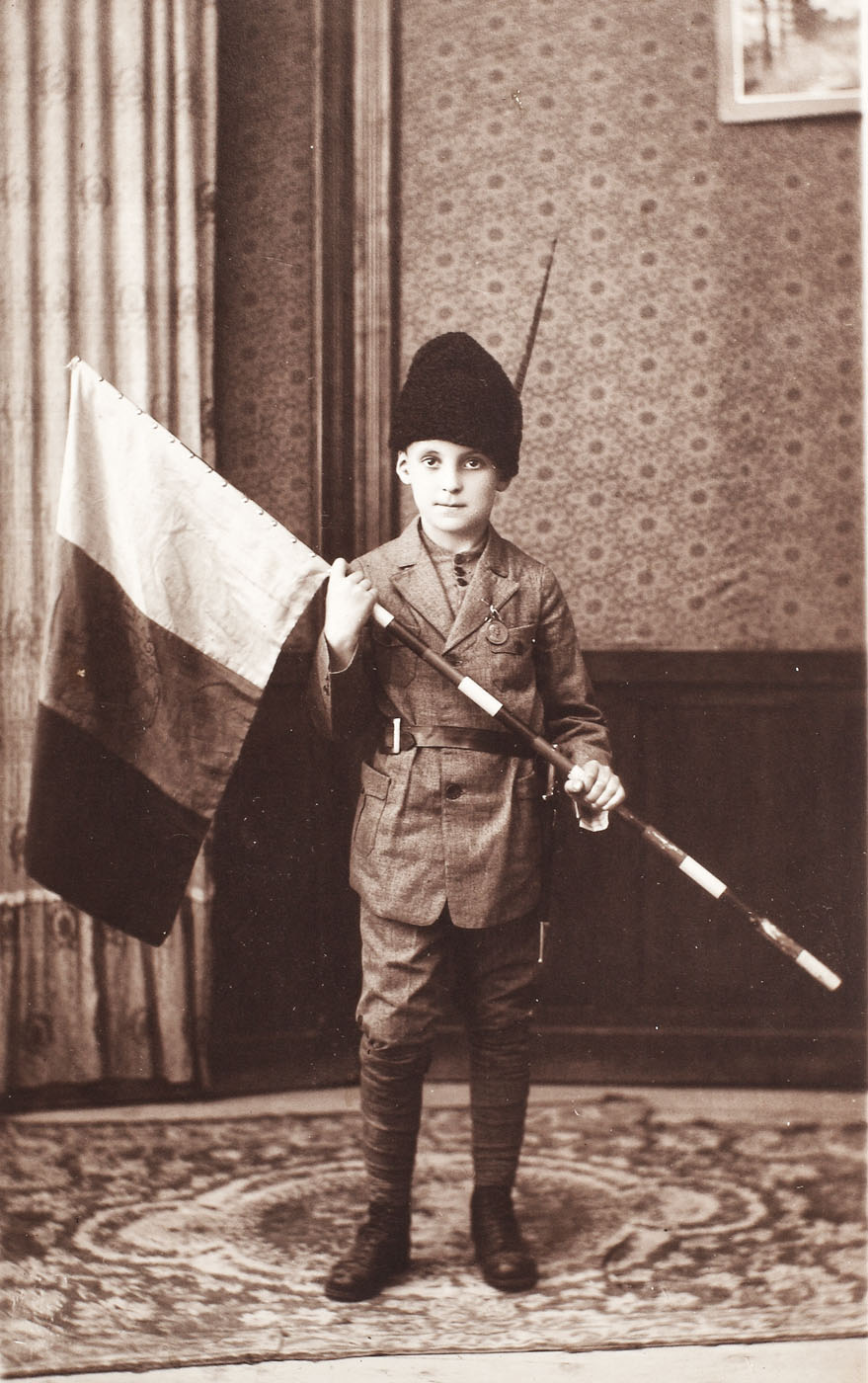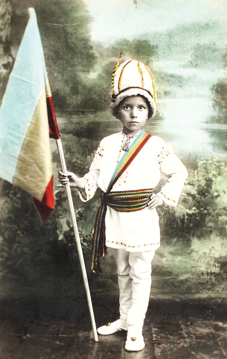 19. Lot format din două fotografii reprezentând copii fluturând tricolorul României