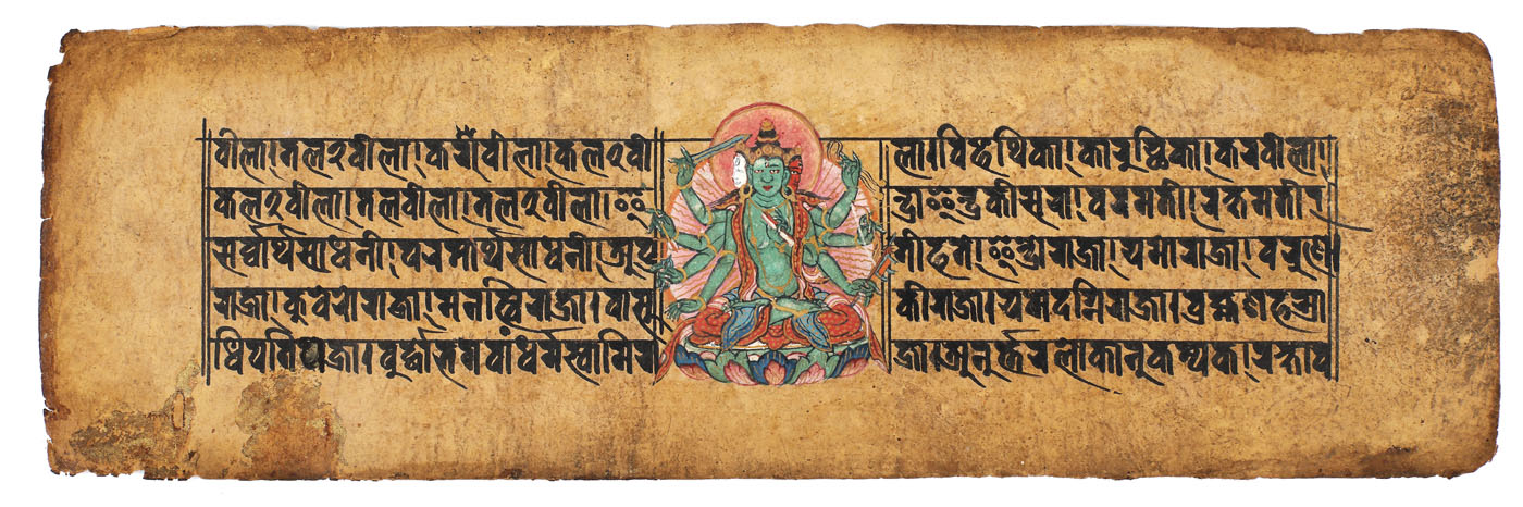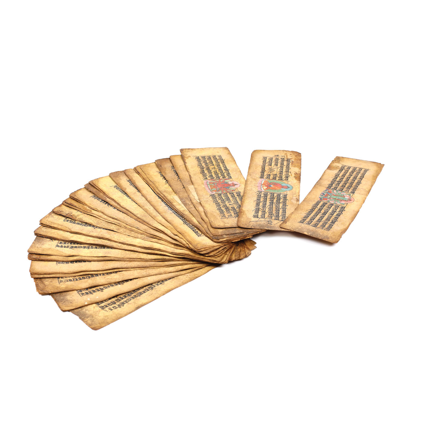 115. Culegere de sutre (rugăciuni budiste), parțial pictate cu zeități budiste (44 file, din care 11 pictate), Tibet, sec. XVI