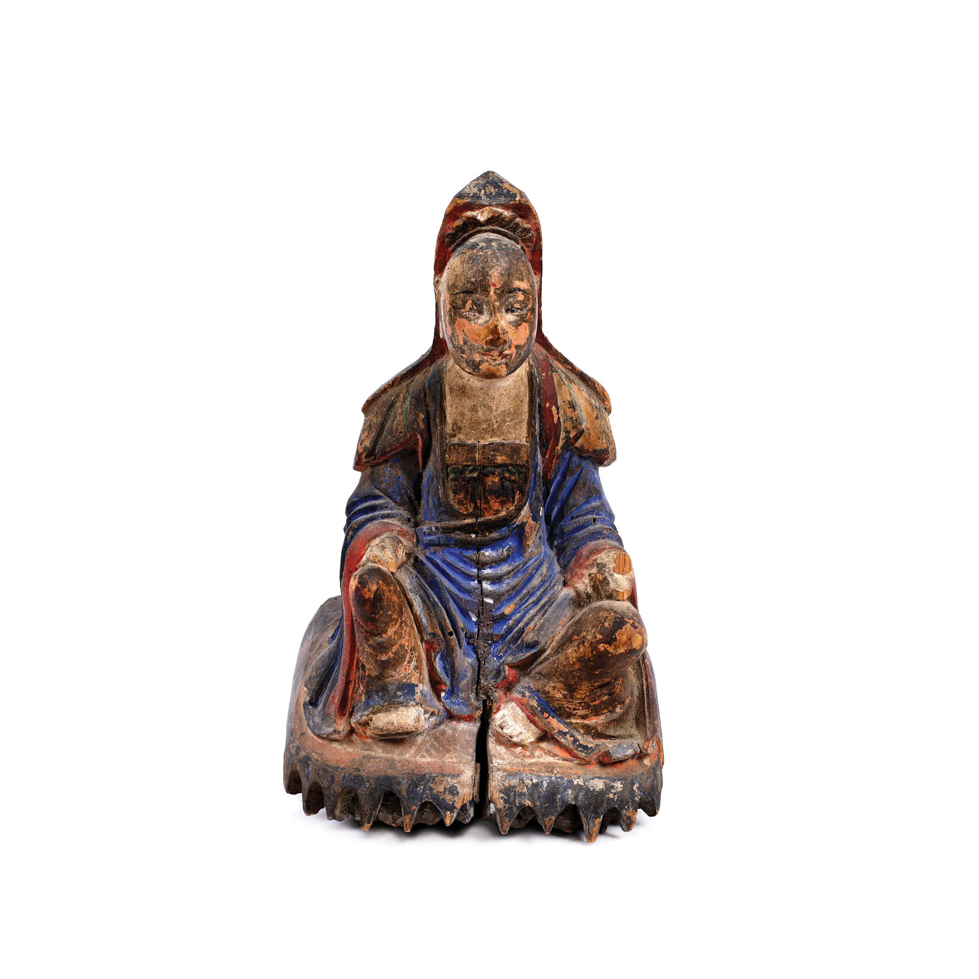 120. Statuetă din lemn exotic pictat, ilustrând un înțelept taoist, sfârșitul perioadei Ming, probabil China de Sud, sec. XVII-XVIII