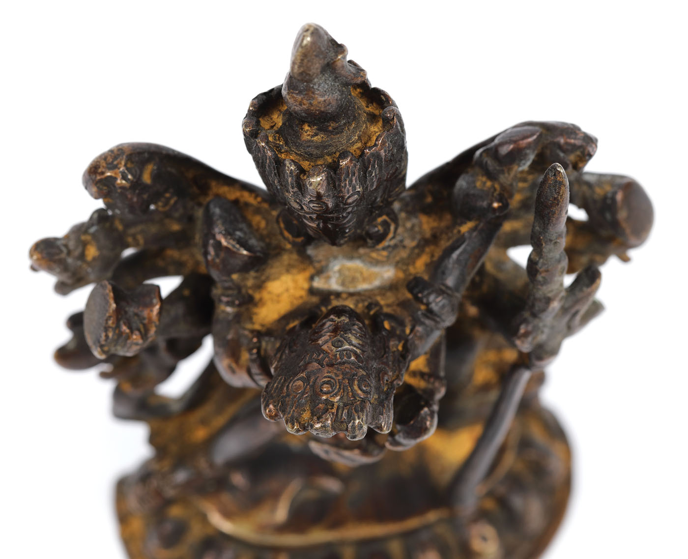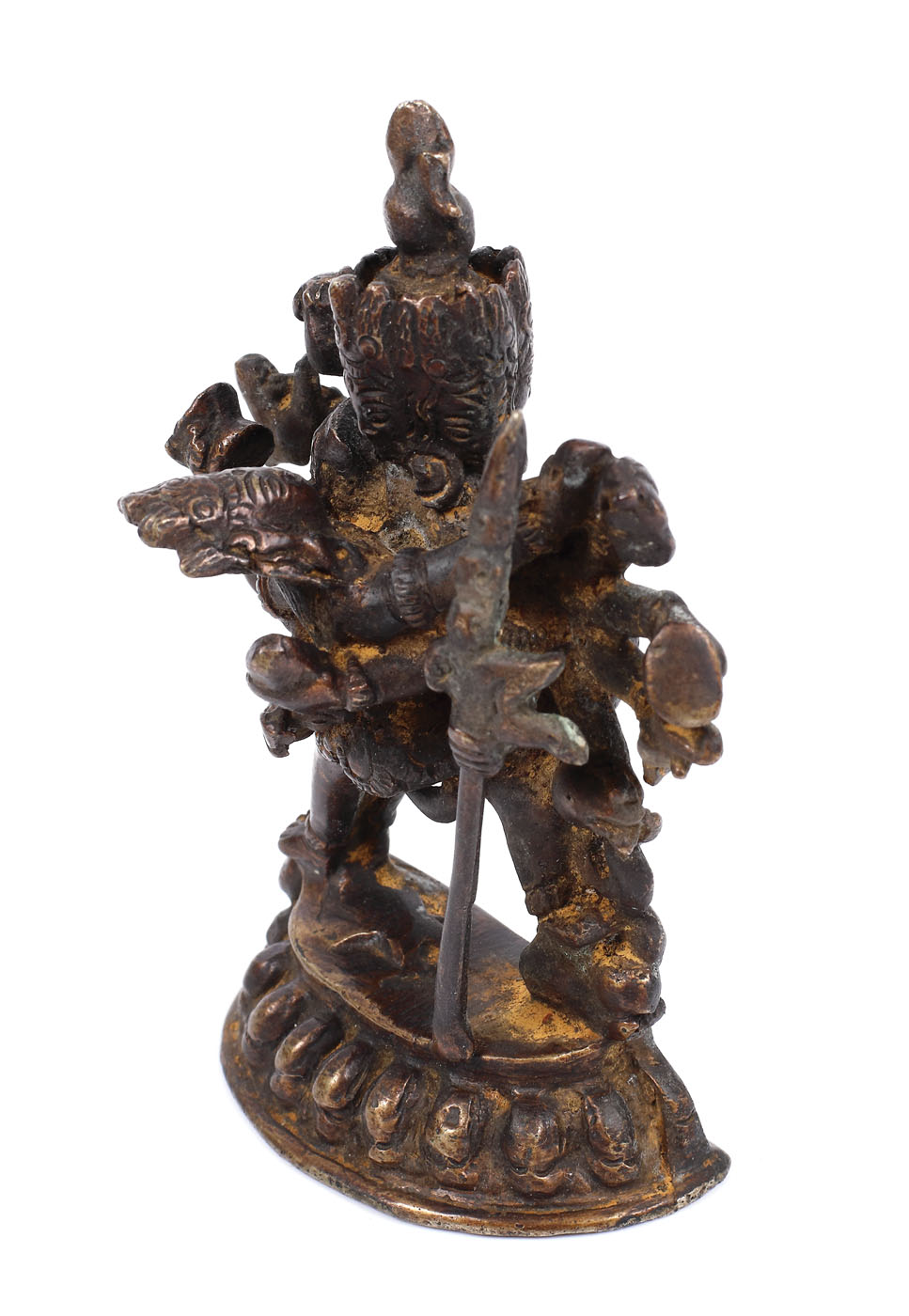 125. Statută din bronz, ilustrând cuplul divin Rudra Shiva, zeul furtunii, şi Parvati, zeița fertilității, dând naștere lui Ganesha, India, sec. XVIII