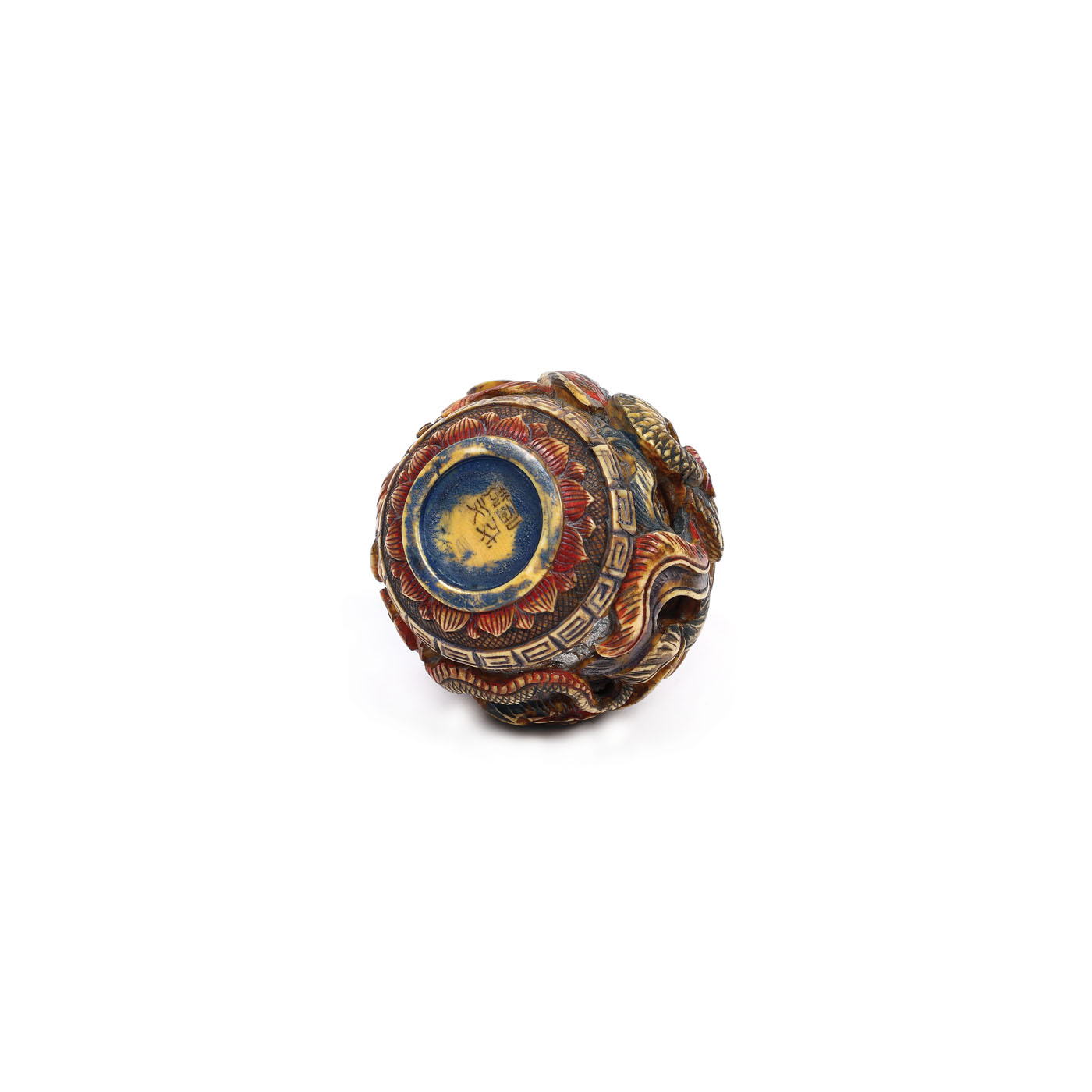144. Sticluţă pentru prizat, din os, decorată cu motivul dragonului, marcată Chenghua, perioada dinastiei Qing, China, sec. XVIII