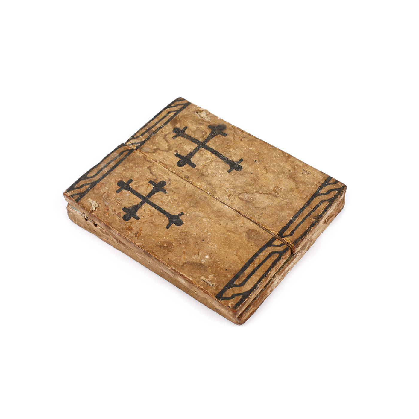 148. Triptic din lemn exotic, ”Maica Domnului cu Pruncul și Arhanghelii, Răstignirea, Judecata de Apoi etc.”, Etiopia, sec. XVIII