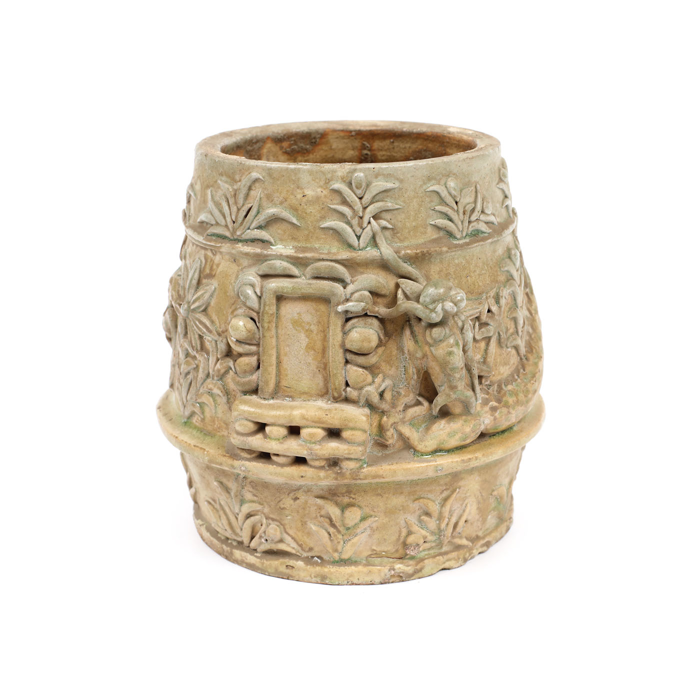 137. Vas din ceramică celadon, decorat cu motivul dragonului la intrarea în templu, perioada dinastiei Yuan, probabil Longquan, China, sec. XII-XIII