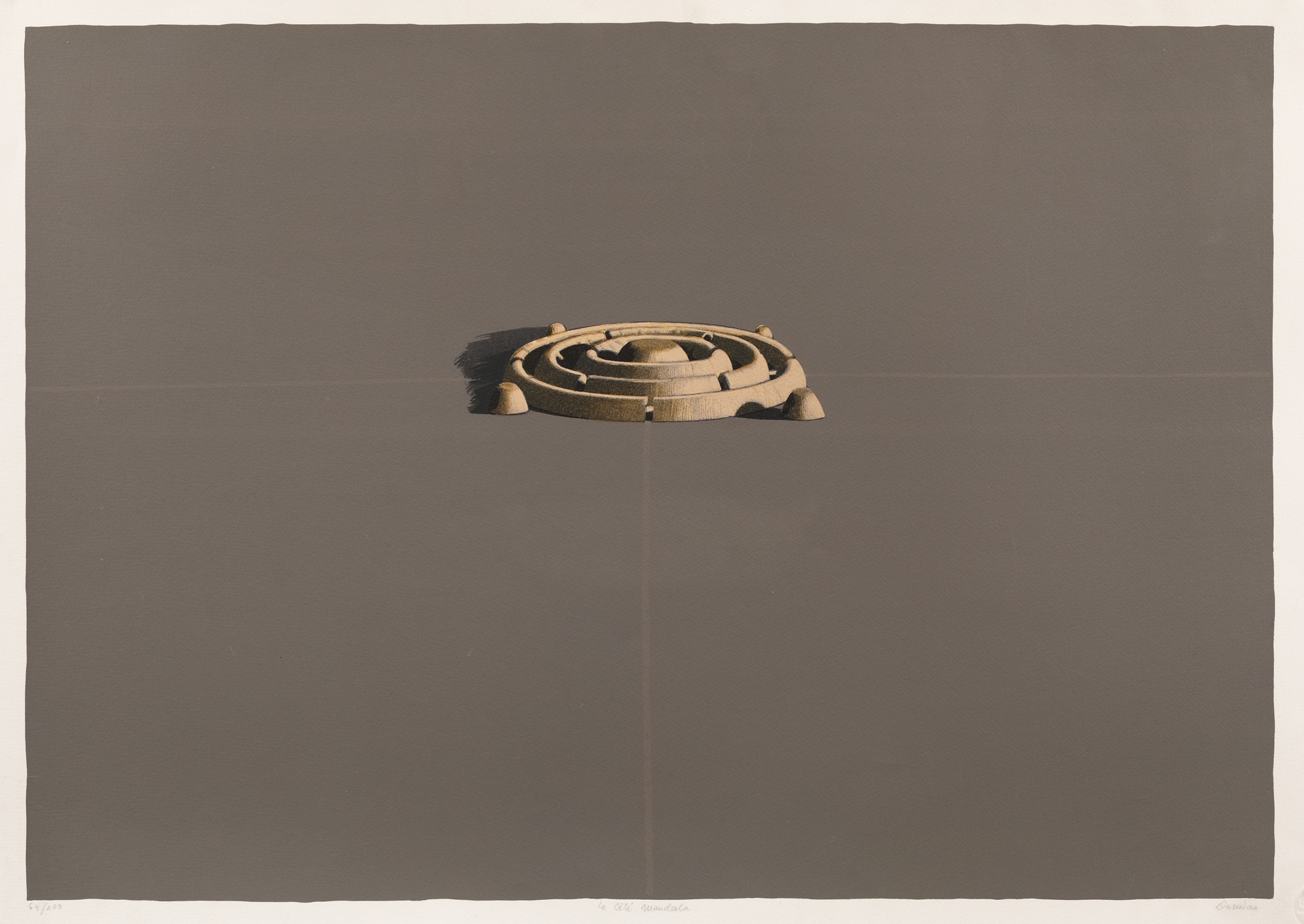 semnat dreapta jos, în creion, "Damian"; intitulat central jos, în creion, "La Cité Mandala"; numerotat stânga jos, în creion, "64/100"