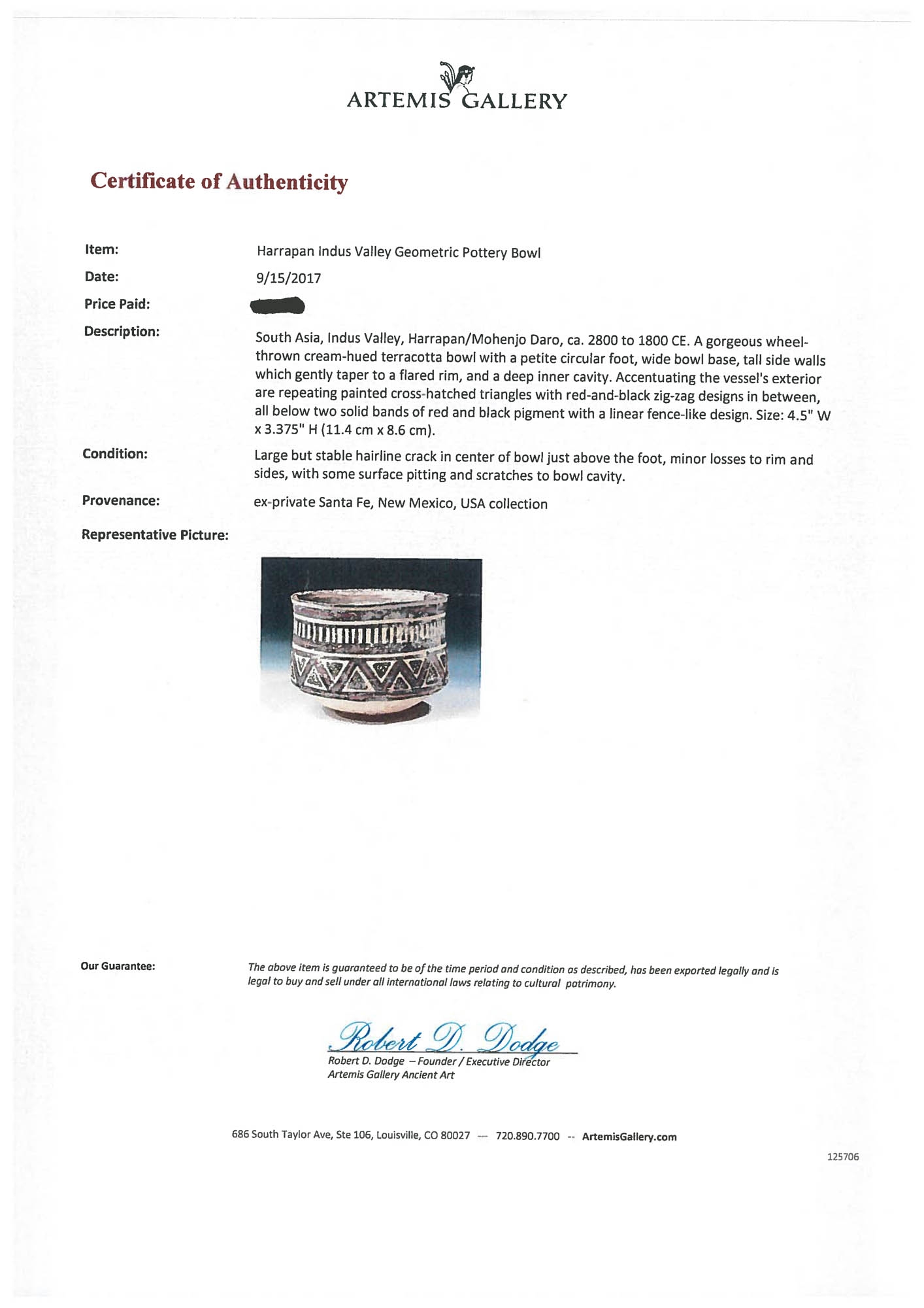 29IT. Bol Harappa din ceramică pictată, decorat cu motive geometrice, aparținând civilizației de pe Valea Indului, cca. 3000 ani vechime, sec. X î.e.n. (însoțită de raport de expertiză)