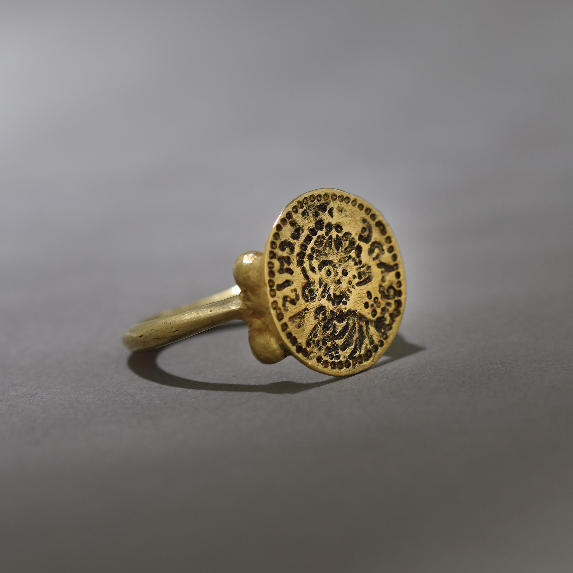 34. Inel din aur, cu rol sigilar, posibil aparținând ducelui longobard de Benevento, sec. VII-VIII