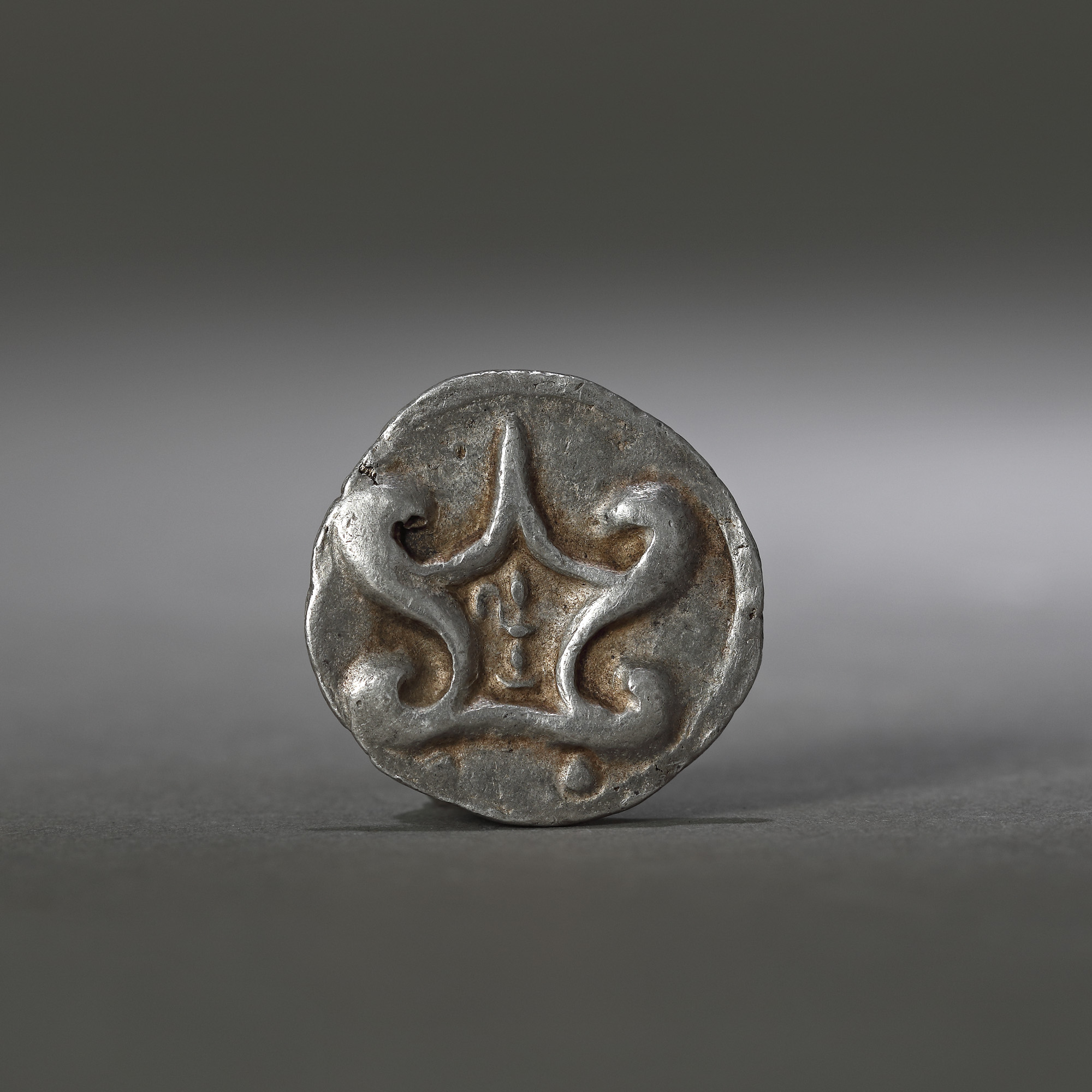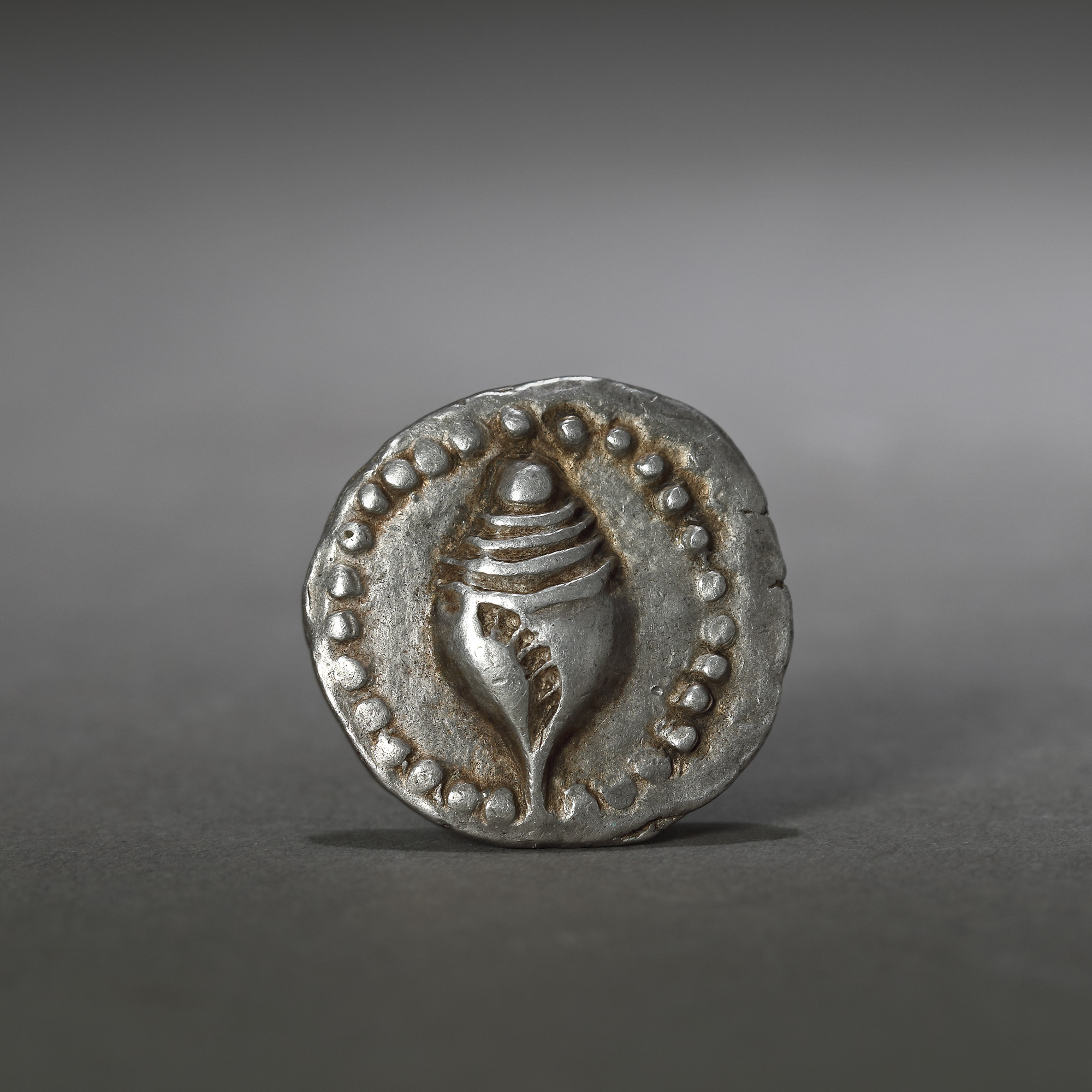 39C. Monedă de argint, reproducând o scoică, emisă de regatul Dvaravati, Thailanda, cca. sec. V
