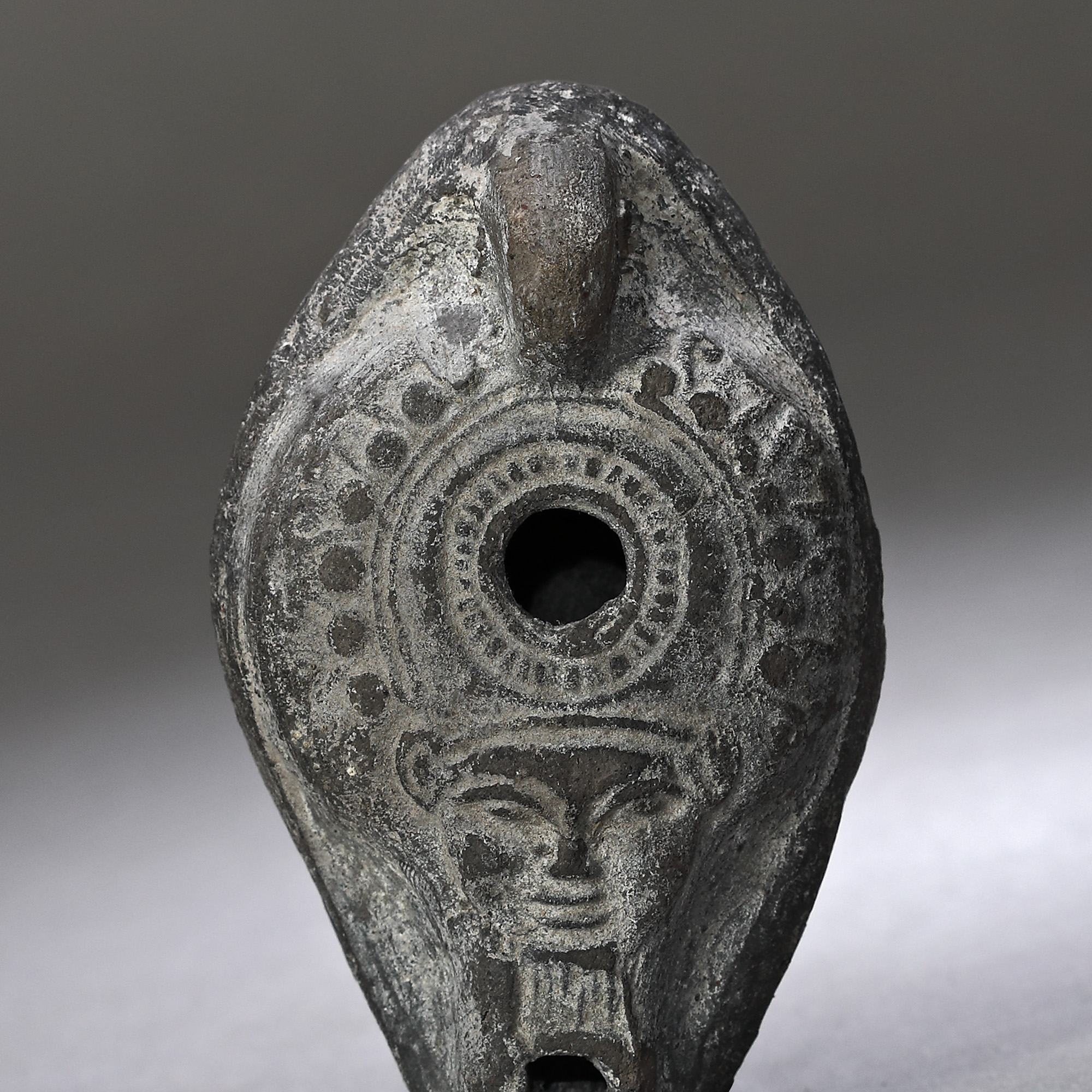 4C. Opaiț egiptean din ceramică, decorat cu Hathor, zeița cerului, probabil perioada Alexandru cel Mare, sec. IV-III î.e.n.