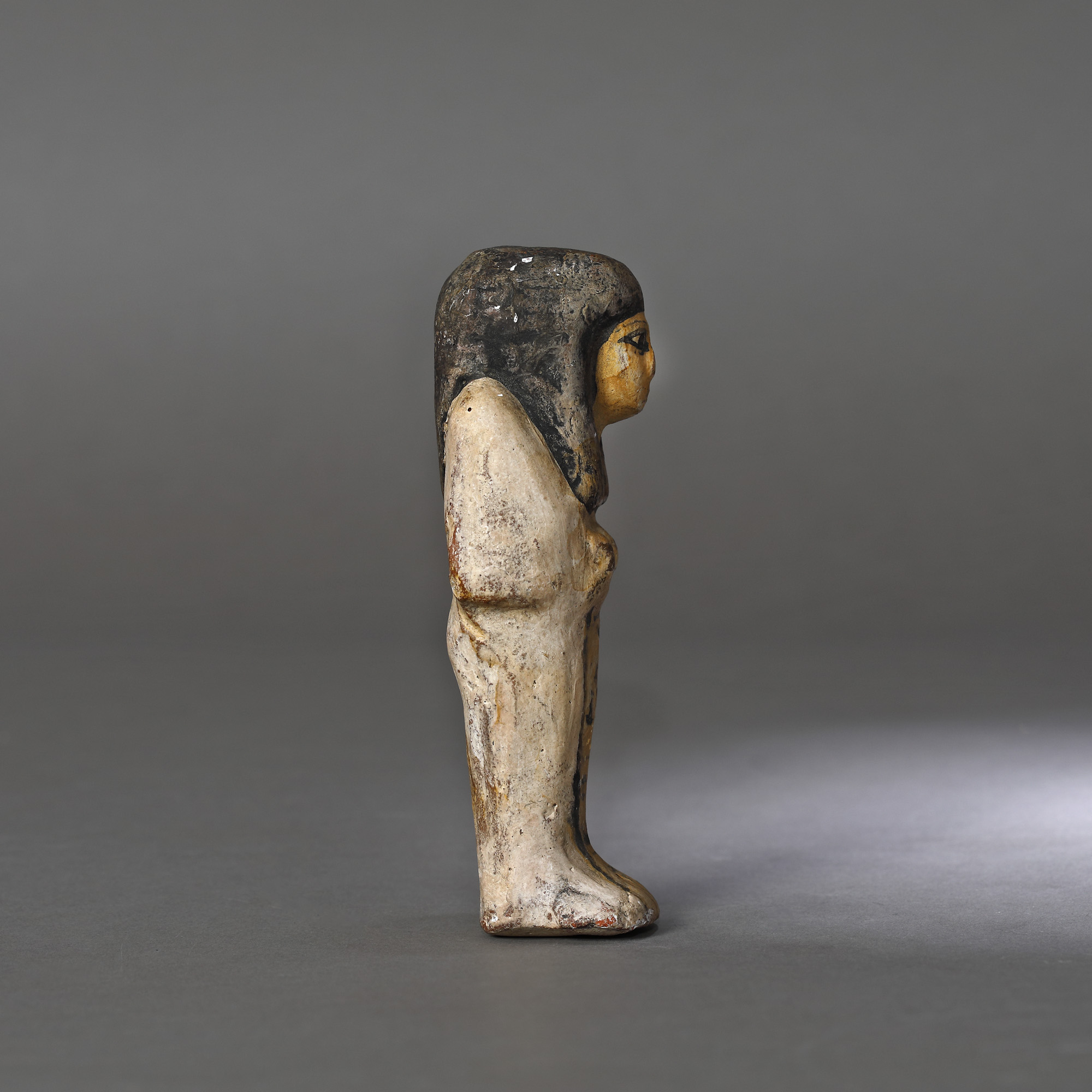 31C. Statuetă egipteană din ceramică pictată, reprezentând o servitoare pentru lumea de apoi, probabil Perioada Dinastică Târzie, sec. VI-V î.e.n.