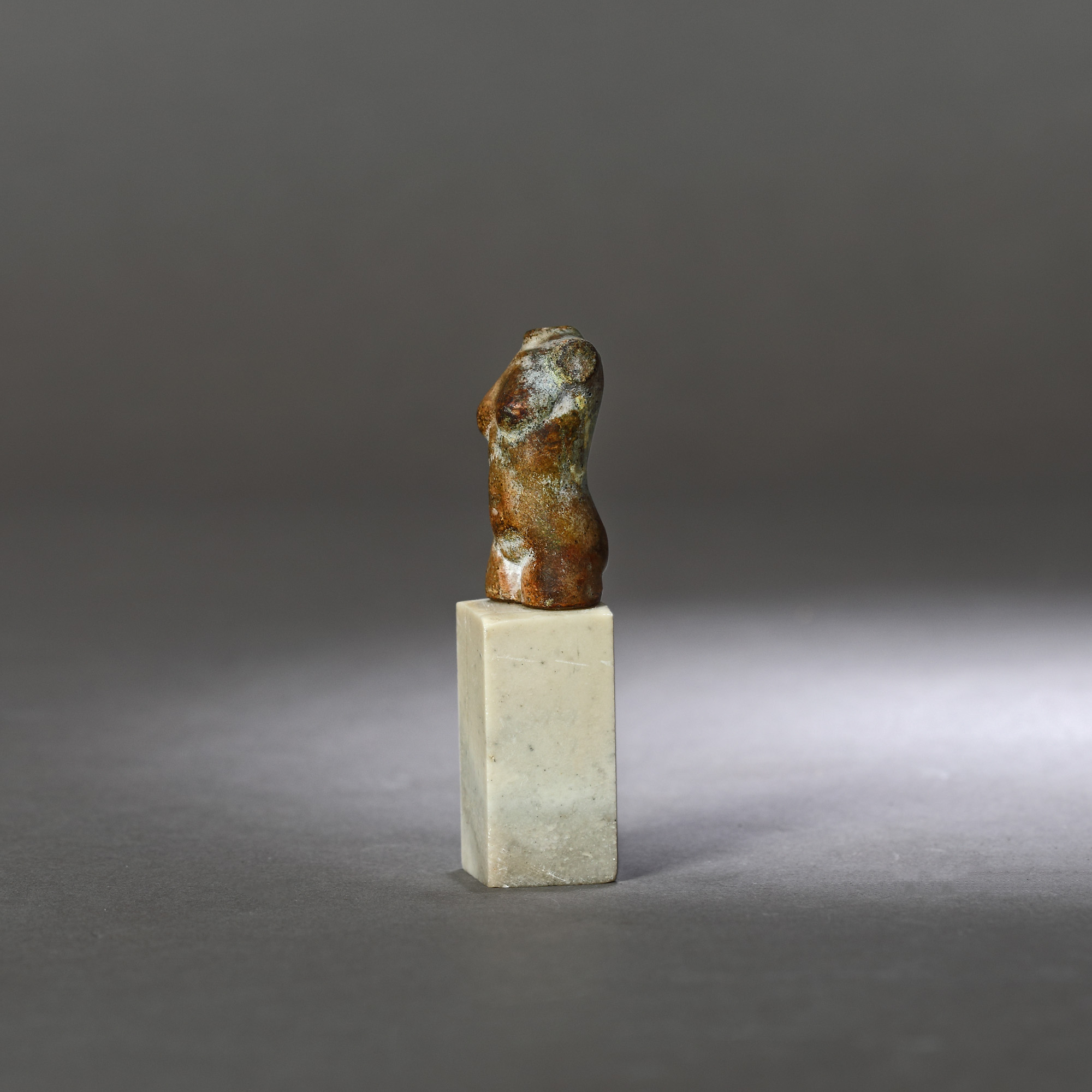 12. Statuetă miniaturală din piatră, reprezentând un tors al zeiței Venus, zeița frumuseții, posibil sec. II