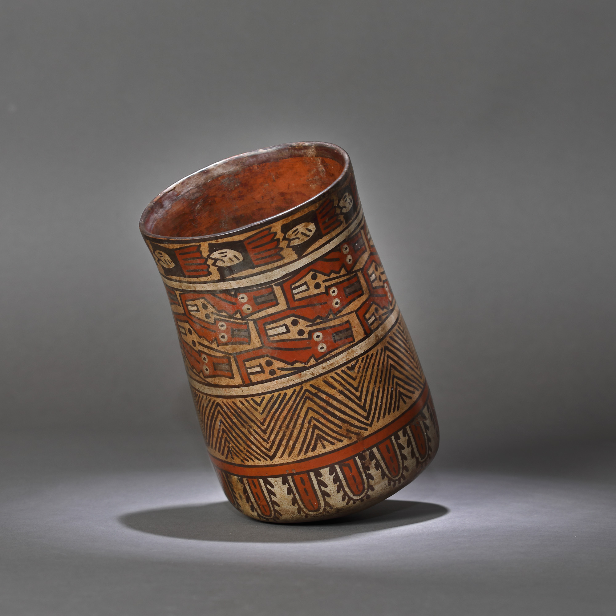 1IT. Vas din ceramică pictată, decorat cu șamani decapitați, aparținând culturii Nazca, Peru, cca. 1400 ani vechime, sec. VII (însoțit de raport de expertiză)