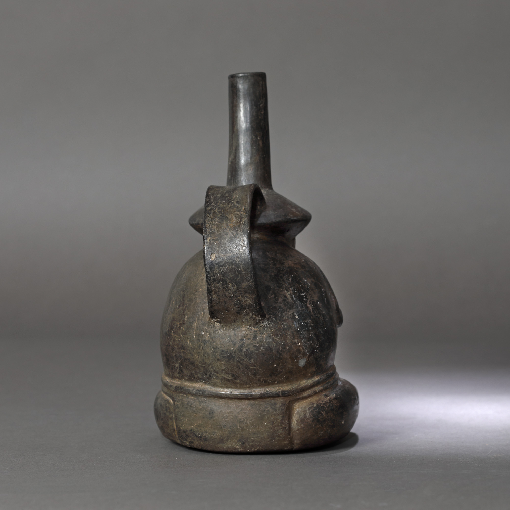 Dezvoltându-se spre sfârșitul primului mileniu d.Hr., cultura Lambayeque-Sicán a continuat până la sfârșitul secolului al XIV-lea, când regiunea a fost cucerită de regatul Chimú, acesta din urmă aflat în plină expansiune. Olarii Sicán au produs o varietate de forme, cel mai comun fiind vasul cu gura și mâner, ca în acest exemplu. Ceramica Sicán, elegant proporționată, tinde să fie repetitivă și foarte stilizată, caracteristici rezultate din utilizarea aproape exclusivă a matrițelor și accentul pus pe producția de masă. Motivul caracteristic în arta Sicán este figura frontală a așa-numitului Lord Sicán. El se regăsește pe ceramică, vase și statuete din bronz, textile și în pictura murală.