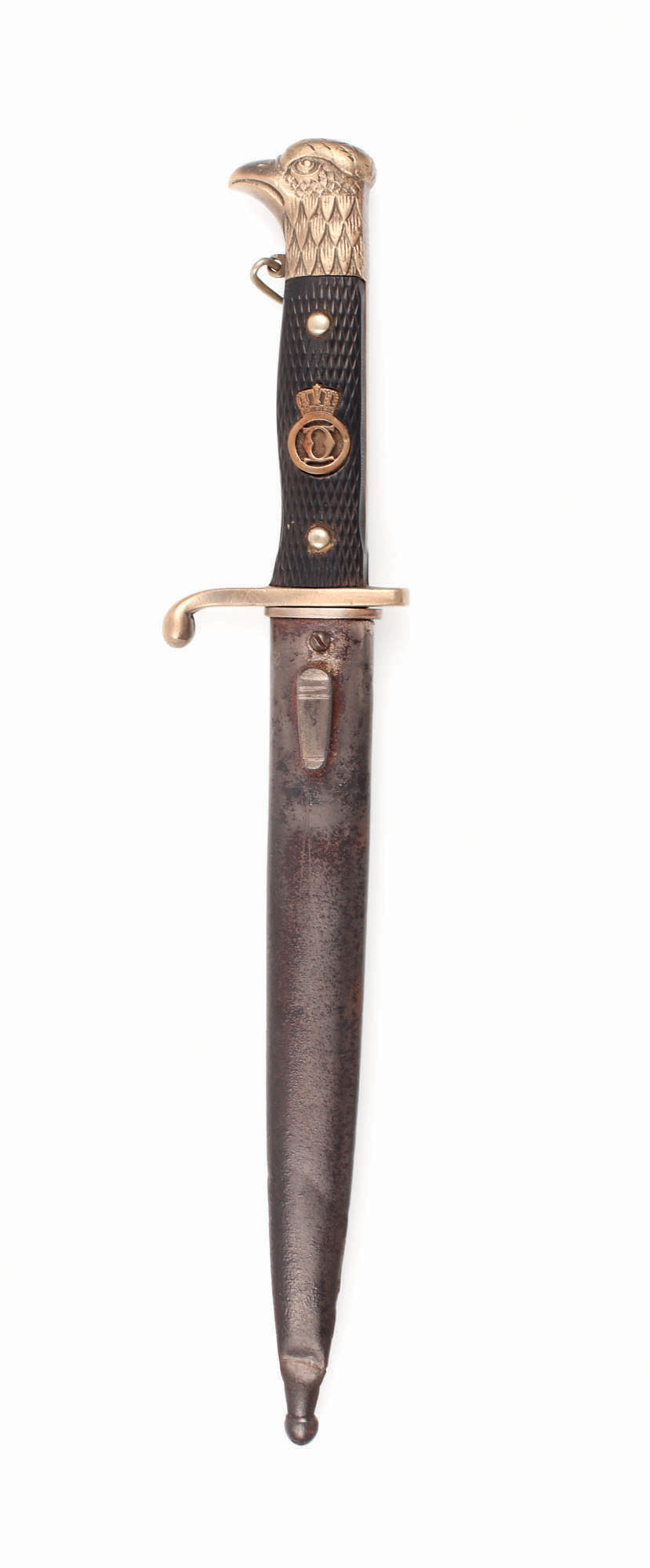 133. Stilet din perioada Regelui Carol II, cu lamă incizată cu decor floral şi cifrul Regelui Carol II, piesă rară