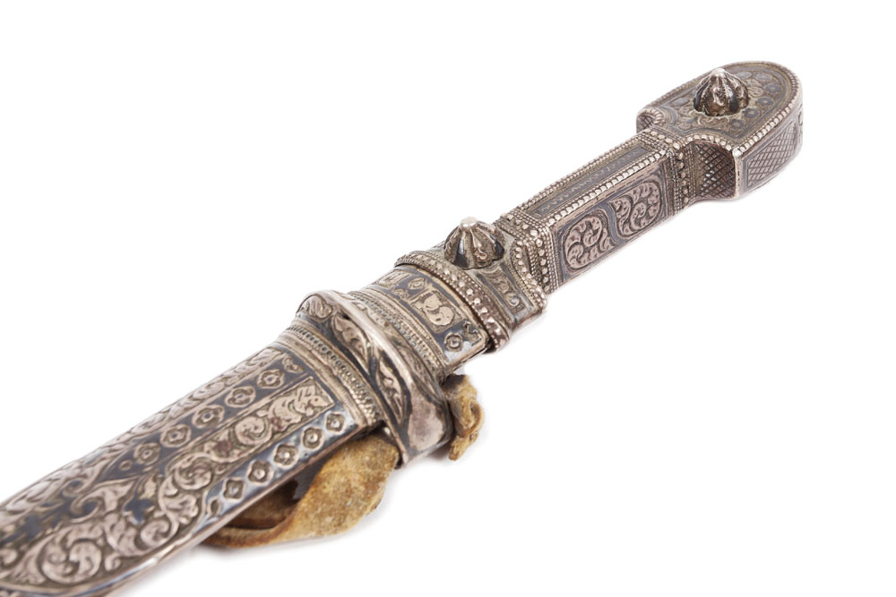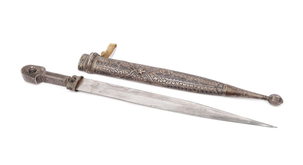 79. Kindjal caucazian, decorat cu argint niello, cu teacă, sfârşitul sec. XIX