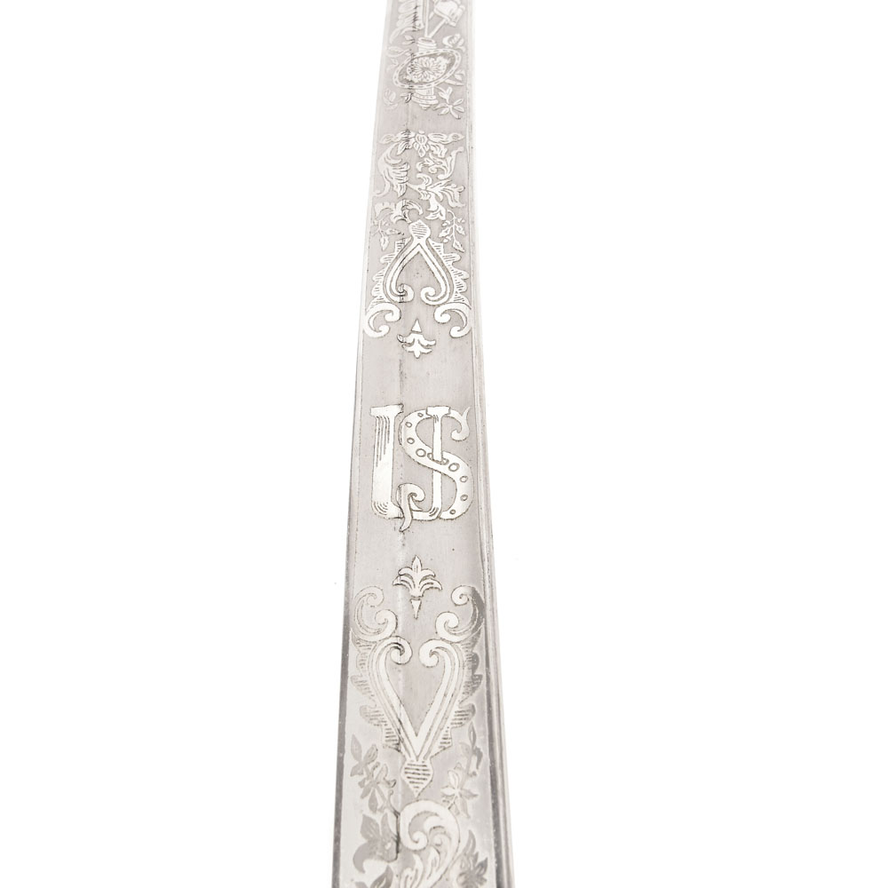 84. Sabie de ceremonie, de ofiţer american, lamă bogat decorată prin incizare şi monogramă U.S., cu teacă, model 1902, perioada lui Theodore Roosevelt