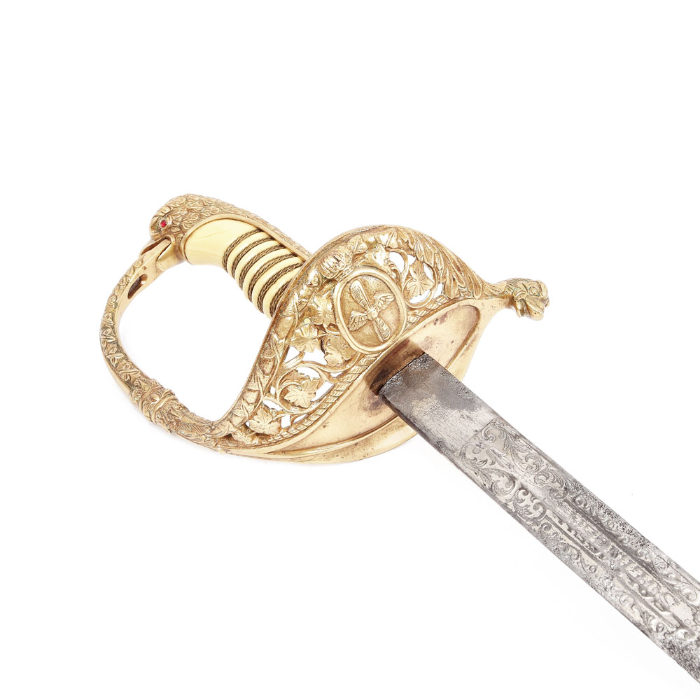57. Sabie de paradă, de ofițer de aviaţie, purtând cifrul Regelui Carol al II-lea