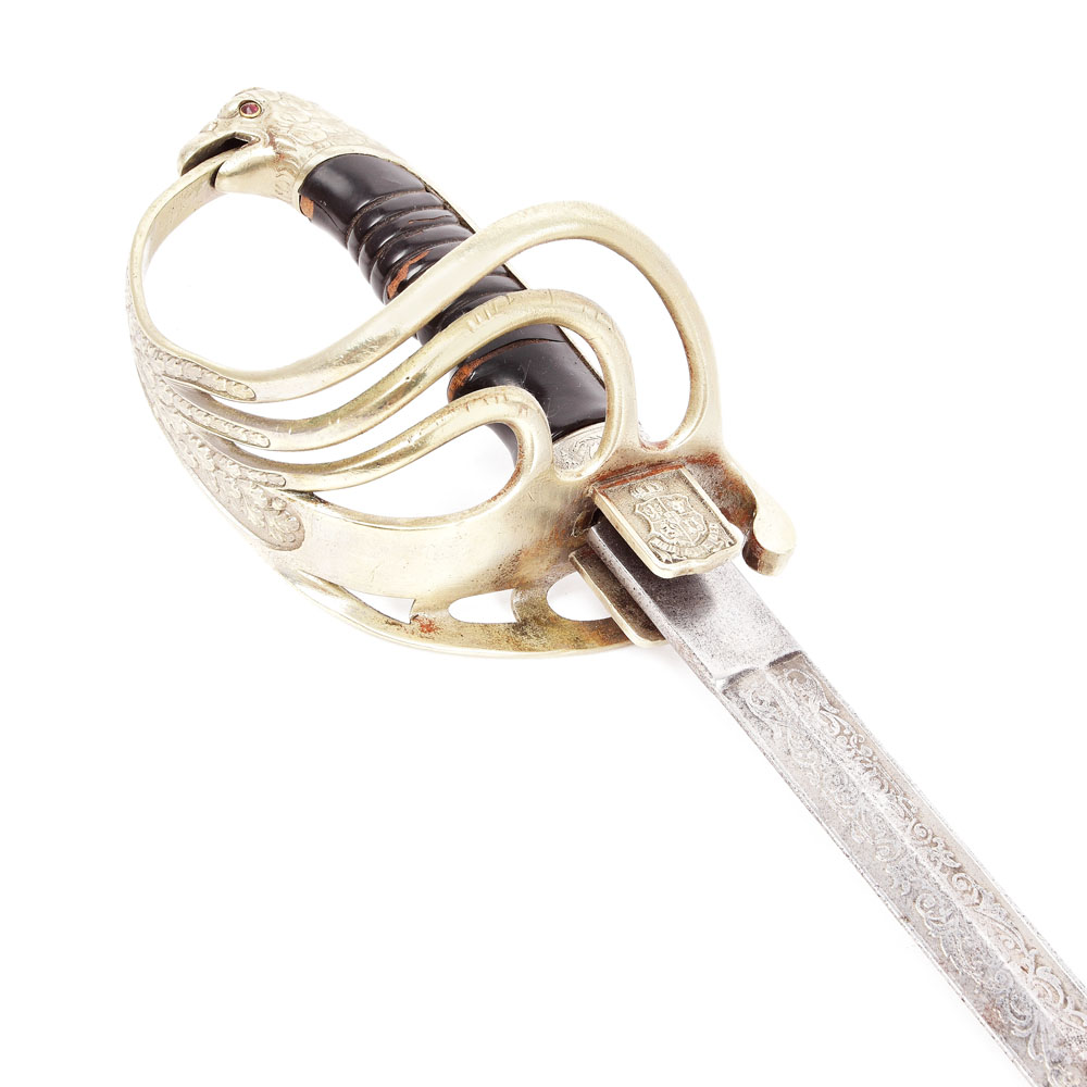 60. Sabie de paradă, de ofițer de infanterie, purtând cifrul Regelui Carol I