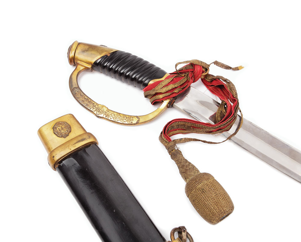 55. Sabie rusească, de paradă, cu teacă, model 1945, a aparţinut fostului ministru Leontin Sălăjan