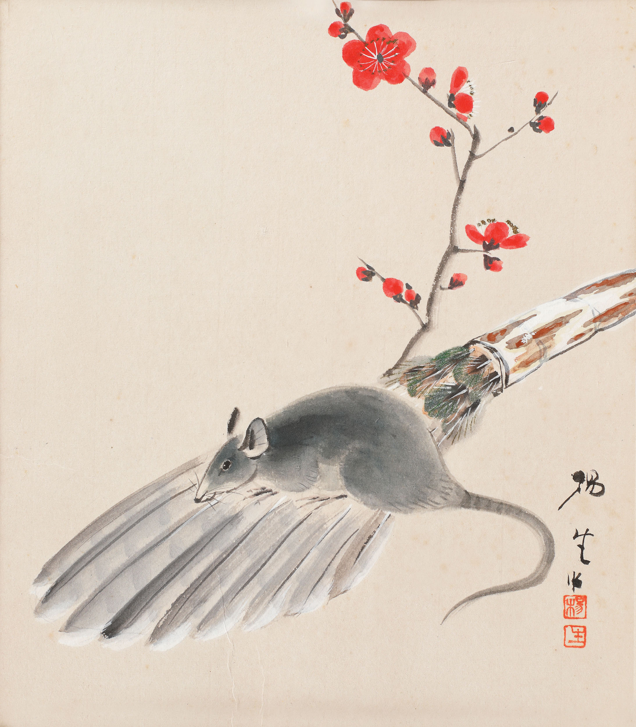 16. Șoarece și flori de cireș [perioada Meiji, sfârșitul sec. XIX]