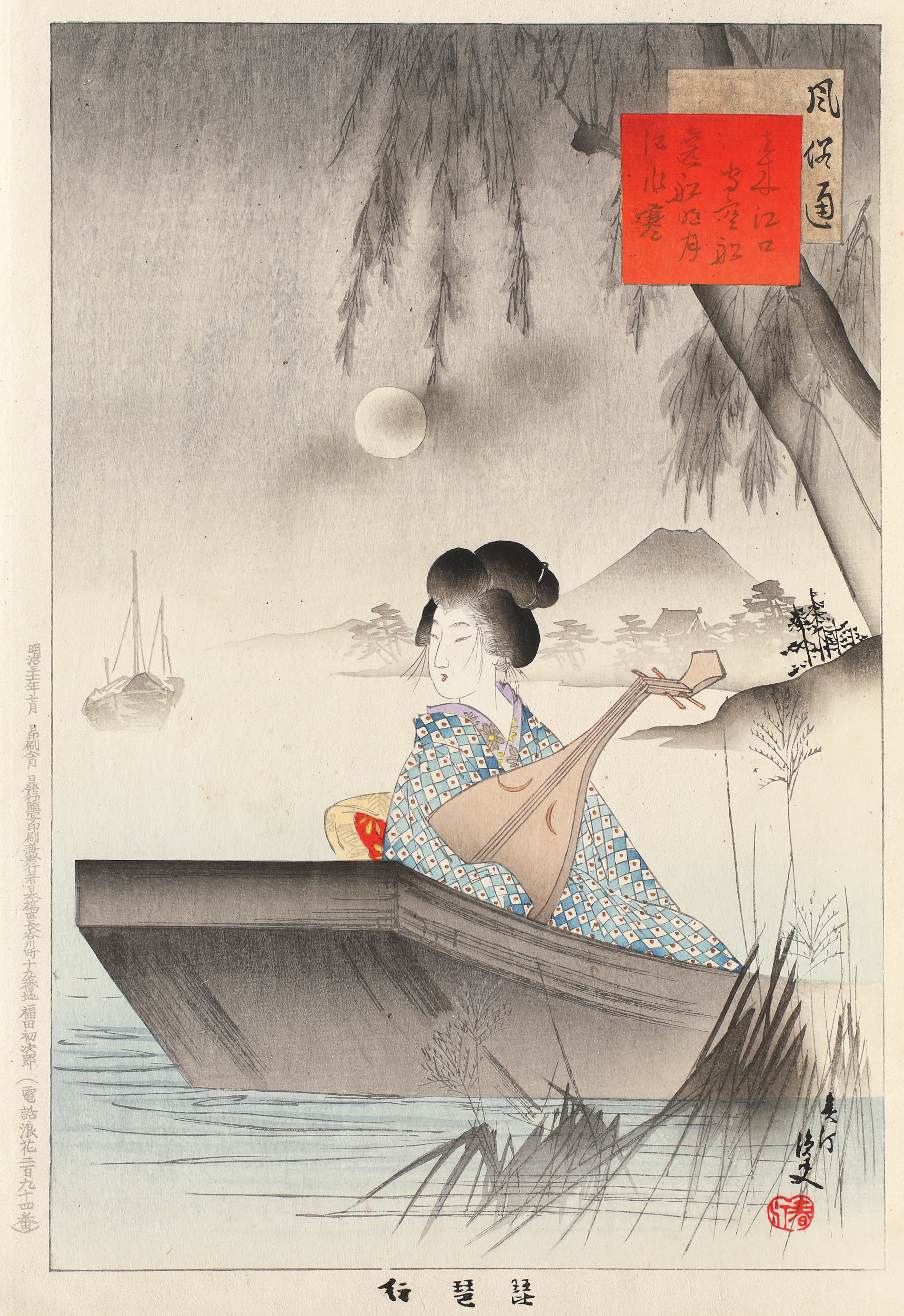 25. Bijin cu biwa într-o barcă (din seria "Tradiții”) [1897]